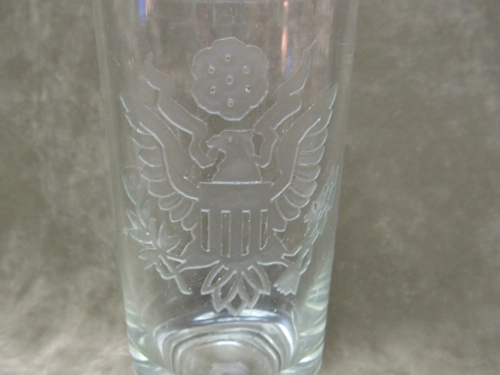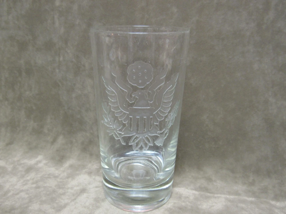 Heavy Etched Glass Tumbler American Eagle US Army Insignia on Crystal Clear