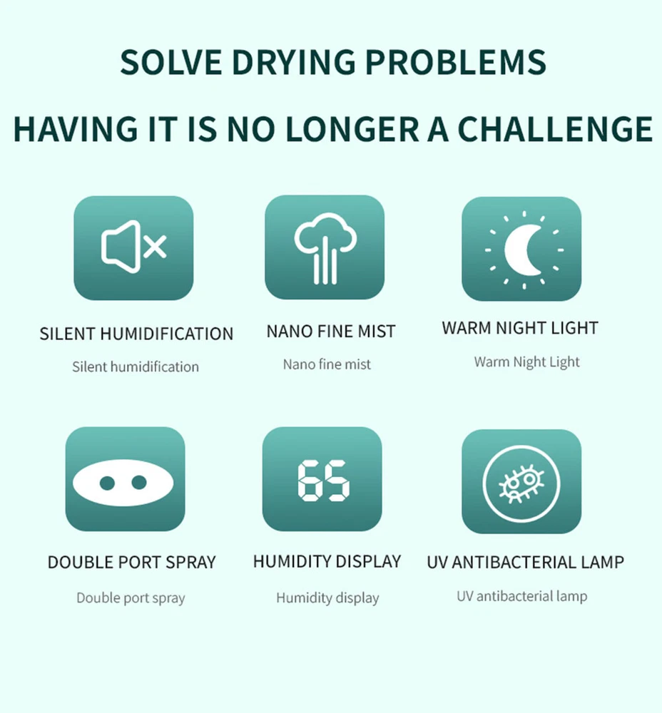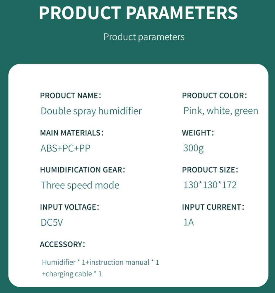 Store Categories Store Categories Pool Accessories Pool Equipments Dispenser Net SET Brushes Vacuum Pool Fountain Active Wear & Body Shaper Orthotics & Brace & Support Socks Waist Trainer Shaper Top Legging/Yoga Pants Compression Pantyhose Sauna Suits Home & Garden Garage Door Remotes Mosquito killer lamp Heated Lunch Box Solar Panels & Kits bathroom ware Pressure Washers Vacuum Cleaners Stove Knobs Food Dehydrators Space Heaters BBQ Grill Covers Solar Panel Controller Air Humidifier String Trimmer Metal Detectors Cell Phones & Accessories Mounts & Holders Reading Glasses Golf Cart Parts Other 1500ML Quiet Nursery Humidifier - Dual Nozzles,360° Coverage,Quiet Night Model Product Description Key Features: ✅ 280ml/H Heavy Fog Output: Dual rotating nozzles deliver deep, rapid moisturizing for rooms up to 300sq. ft. Nano-homogenized mist prevents white dust. ✅ 99.9% Sterilization: Built-in high-intensity blue light eliminates bacteria, mold, and allergens in water before mist is released. ✅ 3 Customizable Modes: 1st Gear: Continuous dual-nozzle spray for fast humidification. 2nd Gear: Alternating left/right mist for even 360° coverage. 3rd Gear: Energy-saving intermittent spray (30s on/30s off). ✅ 700,000Hz High-Frequency Oscillation: Ultrasonic technology breaks water into micro-particles for silent, uniform mist dispersion. ✅ Smart Digital Display: Real-time humidity monitoring with clear LED screen. Adjust settings effortlessly. ✅ Night Comfort Mode: Soft amber night light and whisper-quiet operation (<28dB) for uninterrupted sleep. Why You’ll Love It: ✔️ Health-First Design: Blue light + pre-sterilization ensures clean, safe mist for kids, pets, and allergy sufferers. ✔️ AC/Heating Compatibility: Balances dry air from air conditioners or heaters in bedrooms, offices, nurseries, or greenhouses. ✔️ Easy Maintenance: 1.5L tank (not included in title) with anti-leak design. Top-fill opening for quick refills. Technical Specs: Color: Green Material: ABS+PC+PP Water tank capacity: 1.5L Input voltage: 5V Input current: 1A Power: 3W Usage time: 10 hours for double spraying, 20 hours for intermittent spraying Net weight: 0.389KG Product size: Height 17* Bottom diameter 12CM (6.69*4.72inch) Package Includes: 1 x Humidifier 1 x Type-C power cable 1 x Chinese and English Payment Policy Shipping Policy Feedback Payment Policy 1 . We accept Credit or debit card, Apple Pay, Google Pay, and PayPal. 2 . Payment should be completed within 2 (Two) days of auction closing. Or unpaid dispute will be filed for closing auction. 3 . Sales Tax of 9% will be applied for orders shipped within the state of California 4 . We will leave a positive feedback immediately after payment is received. We appreciate a positive feedback as much as you do. If for some reason there is any issue with the purchase, please contact us prior to leaving feedback, and we will be glad to work with you to have it resolved. Shipping Policy 1 . We Ship to United States ONLY. 2 . Ship from two warehouses and only to eBay ADDRESS. Package handling only takes 1 business day at our warehouse, so please make sure entering correct payment and shipping information before checking out. Once your payment is completed, pls leave ebay note if the changes are needed before we send the product. 3 . Truck company: 3-8 business days. | USPS: 2-6 business days. | UPS/FEDEX: 3-5 business days. 4 . Local pick up is available. Feedback 1 . Any problem after receiving our goods, please contact us before leaving Neutral/Negative feedback. We promise to help you solve it asap, and make you feel satisfied absolutely. 2 . Please DO NOT leave negative feedback without asking for help. Please do not leave negative or neutral feedback if you haven't received item in 30 days, because we have mentioned the shipping time repeatedly. Copyright © 2023 Dianxiaomi
