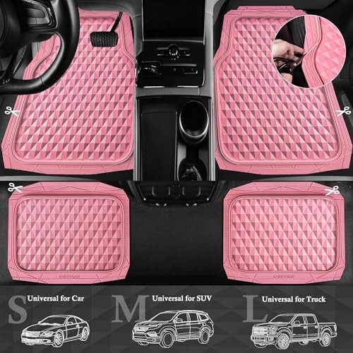 Return Policy Fast Delivery Trusted seller Heavy Duty Rubber Pink Car Floor Mats & Cargo Liners, Deep Dish All-Weather Trunk Mats Durable Anti-Slip 3D Rhombus Waterproof Trim to Fit Liner Universal Fit Auto,Sedan,SUV,Truck, Pink Product Description 【ALL WEATHER PROTECTION】The 3D Cyber-Rhombus Heavy-Duty rubber car floor mats use for all season. Including front mats, rear mats, Cargo Liner. Protect your truck's floors from dirt and debris. Easy to clean. Deep Dish design of the car mats can prevent from holds water, snow, mud, and road salt. 【TRIMMABLE UNIVERSAL FIT】T are cuttable lines on the sides of mats, which can be modified according to your vehicle size for a perfect fit. Fast and easy to install in most cars, trucks and SUVs. Thick, heavy duty mats & Liners. Flexible for floor contours and tough for all weather conditions. 【FIERCE GRIPPING POWER】The heavy duty car mats use anti slip nail bottom on the back of the mat, which can grip your vehicle’s carpet tightly to keep these floor mats from sliding or shifting during use. Make your driving more safety and enjoy driving pleasure. 【DIMENSIONS AND COLOR】Total of 4 Mats - Set of 2 Front Mats, 1 Rear Mats,1 Cargo Liner for full coverage. Front Mats, 30.3" L x 20.8" W. Rear Mats 17.3" W x 58.2" L. Cargo Liner, 36.5" W x 54" L. Can be cut according to your desired size. The rear seat mats can be cut into two pieces, which is also suitable for cars with obstacles in the middle of the rear seat. 【 CAR MATS】The rubber car floor mat can be used in conjunction with all carpet mats. The rubber car mat has deep grooves, which perfectly combine with floor mats, and will not slide. We put product quality and your trust first. We do our best to provide you with quality service. Shipping Returns Payment Shipping Shipping is FREE to all addresses other than APO/PO boxes in the lower 48 states. All our stock ships from US-based warehouses. Shipped via USPS or UPS (depending on location and package weight) Unless stated otherwise, all orders will ship within 24-72 hours of your payment being processed. Check our feedback to see the great reviews of FAST shipping we offer. Returns Seller does not accept returns Payment We currently accept payment via eBay managed payments only. Once payment is cleared, we will dispatch your shipment within 1-3 business days. Please refer to the "Shipping" tab for more information regarding shipping speed to your destination.
