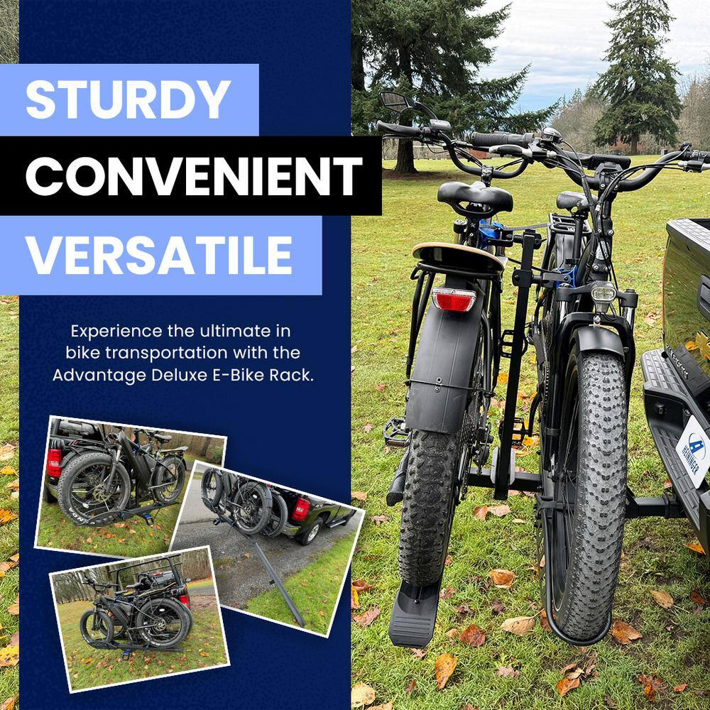 Fast Shipping On All Items 30 Days Money Guarantee Customer Support Excellent Service 100% Satisfaction Satisfaction Guaranteed 2-Bike Hitch Bike Rack Platform Style E-Bike Rack Specification Automotive Part Type Fold Up Bike Rack Bike Mount Type Hitch Bike Racks Color Family Black Compatible Bike Type BMX,Beach Cruiser,Communting,Hybrid,Kids,Mountain,Road,Track,Universal Features Folding,Rust Resistant,UV Resistant General Part Type Fold Up Bike Rack Included Parts Handle,Hitch Pin,Ratchet Straps Material Steel Number of Bikes 2 Product Weight (lb) 68 lb Returnable 90-Day Weight Capacity (lb) 200 lb Manufacturer Warranty 2 year limited Product Depth (in) 42 in Product Height (in) 41 in Product Width (in) 69 in 69.0 inches x 42.0 inches x 41.0 inches. Weight: 68.0 lb Item Description Experience the ultimate in bike transportation with the Advantage Deluxe E-Bike Rack. Engineered for safety, convenience, and versatility, this hitch-mounted platform-style rack ensures your bikes stay secure on and off-road. With a total weight capacity of 200 pounds and compatibility with various bike types, including e-bikes and mountain bikes with up to 5" fat tires, this rack offers unparalleled flexibility. Its user-friendly design features a convenient handle for easy lifting and foldable storage when not in use. Plus, with a sturdy 2-inch hitch receiver and simple adaptation to different bike lengths, installation and stability are a breeze. Say goodbye to wobbly, unreliable bike racks - the Advantage Deluxe E-Bike Rack is your go-to solution for hassle-free bike transportation wherever your adventures take you. About us We offer the best prices around on high quality products. Our E-store includes media such as books, movies, music and games while offering electronics, toys, sporting apparel, clothing, tools, general home, garden items and more. Shipping We are always working hard to ensure your package arrives as soon as possible. Please understand that some factors like weather, high postal traffic, and the performance of shipping companies are outside of our control. We offer free shipping to the lower 48 states and ship within 2-3 business days of payment, usually sooner. We do not accept P.O. Boxes. Please provide a physical address. For shipping outside of the continental USA, we only use eBay's Global Shipping Program.The item is shipped to KY and then sent to the rest of the world. International customers are responsible for all duties and taxes. Continue to check out to calculate costs for shipping the item to your country. Messages regarding eBay's Global Shipping Program MUST be directed at eBay EXCLUSIVELY. Returns We offer a 30-Day Return Policy on items in which you are not completely satisfied with. You have the option of a full-refund or an exchange of the item. No returns are available on items shipped outside of the USA Satisfaction We try over very best to make sure every customer is completely satisfied. If there's a problem, message us! We're happy to help. Payment Options Shop With Confidence