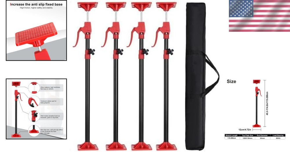 Heavy-Duty 4 PCS Cabinet Jacks | Adjustable from 45.3"-114.2" | 3rd Hand Support ‹ › ‹ › ‹ › ‹ › ‹ › ‹ › ‹ › ‹ › ‹ › ‹ › Heavy-Duty 4 PCS Cabinet Jacks Adjustable from 45.3" to 114.2" | 3rd Hand Support Home Improvement Essentials: Transform your DIY endeavors with our Heavy-Duty Cabinet Jacks, designed for versatility across a myriad of home improvement projects. Whether you are: Supporting cabinets Installing trim, decking, or shelves Handling drywall, range hoods, or crown molding Managing ratcheting cargo bar support This tool is your steadfast partner in home enhancement, effortlessly adapting to any task. Free Your Hands: Why wrestle with cumbersome materials when our Adjustable Support Pole can act as your third hand? Enjoy the freedom to work independently, further streamlining your projects without compromising on quality. Less manpower means greater efficiency and more time to perfect your craft. Powerful Performance & Material: Crafted from high-quality steel pipe and durable high-density ABS material, this 3rd hand support pole boasts exceptional strength: Weighs a manageable 8.8 lb Holds a phenomenal capacity of up to 154 lb (88 lb at a 45° angle) Resistant to corrosion with an anti-oxidation coating Designed for longevity, this tool is built to withstand the rigors of frequent use. Easy to Use: Your cabinet jacks arrive ready for action - no elaborate assembly necessary! Simply follow these two steps: Unscrew the locking knob, press the spring ball, and align the black line to extend the rod. Tighten the knob when the ball pin pops out of the hole. Fine-tune the adjustment handle for precision fitting according to your needs. Unique Design: Experience innovation with: A quick-release lever for easy lifting Screws that lock the position to prevent accidental drops Anti-slip swivel feet that enhance grip and protect surfaces Adjustable at 360° and 45° to 90° for tailored support during any project Why Choose Our Heavy-Duty Cabinet Jacks? Don’t let cumbersome materials hold you back; invest in the efficiency and ease of our Heavy-Duty Cabinet Jacks. Perfect for any home improvement project, they provide unmatched support and flexibility. Elevate your craftsmanship—order your set of 4 PCS Cabinet Jacks today and witness the transformation of your projects! Shipping Free & Fast Shipping - We offer free shipping to most of the USA with a normal delivery time of 3-7 days. However, due to the current situation, additional delivery time (up to 3 weeks) may be required for some items. Alternative Carriers - We may use alternative carriers (e.g. USPS, FedEx, UPS, etc.) to ensure your package arrives safely and on time. Due to the use of multiple carriers, we are unable to provide a tracking number automatically. Handling Time - Orders are processed and shipped within 1-2 business days of receiving cleared payment. Shipping Restrictions - Shipping to Alaska, Hawaii, Puerto Rico, Guam, and other US territories may incur shipping charges or delivery restrictions. Please contact us before ordering, or your order can be refunded/cancelled. State Restrictions - There may be restrictions based on your state of purchase. For example, certain items may not be shipped to California due to state regulations. Contact for Tracking Updates - If you require tracking updates or have any concerns about the delivery of your order, please feel free to contact us, and we will be happy to assist you. Return 30-Day Hassle-Free Returns - We want you to be completely satisfied with your purchase. If you are not, you can return the item within 30 days of receiving it for a full refund or exchange. Easy Return Process - To start a return, simply contact us and we will provide you with a prepaid return shipping label and detailed instructions. Restocking Fee - There are no restocking fees for returns. However, the buyer is responsible for return shipping costs if the return is not due to a seller's error. Refund Processing Time - Refunds will be processed within 5 business days of receiving the returned item in its condition. Payment We accept all major credit cards, PayPal, and Apple Pay for your convenience. Your payment information is secure and encrypted to ensure a safe and seamless transaction. Please complete your payment within 3 days of purchase to avoid any delays in shipping. Feedback Your feedback is extremely important to us. We strive to provide the best products and customer service possible. If you are satisfied with your purchase, please take a moment to leave us a positive review. If you have any concerns or issues with your order, please contact us before leaving negative feedback. We are committed to resolving any problems and ensuring your satisfaction. Contact Us If you have any questions or concerns, please feel free to out to our customer support team. You can contact us through the eBay messaging system. We are available Monday to Friday, 9:00 am to 5:00 pm EST, and we will do our best to respond to your inquiry within 24 hours. Buy it now and enjoy a pleasant shopping experience! Unit Quantity: 4 Material: ABS,Steel Mounting: Free Standing Department: Adults Room: Basement,Garage,Home Office/Study Features: Adjustable Shelves,With Lighting Set Includes: 4 PCS Cabinet Jacks Item Height: Cabinet Jacks Item Length: Cabinet Jacks Item Width: Cabinet Jacks Type: Support Pole Door Style: None Color: None Number of Shelves: None Item Depth: 1 in Item Weight: 8.8 lb Handle Material: None Style: Modern Number of Drawers: None Number of Doors: None Number of Items in Set: 4 Handle Finish: None Finish: None Distance from Floor to Bottom: 19.7 in Shape: Rectangular Unit Type: lb