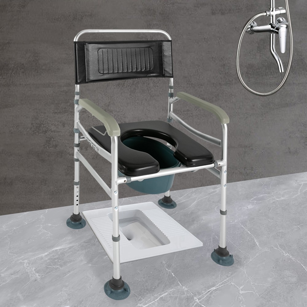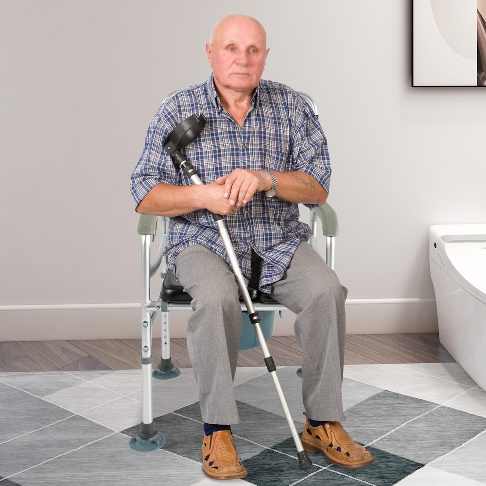 Specifications Color: Black Style: Modern Assembly Required: Yes Material: Aluminum Alloy, Plastic, PU, ABS Surface Treatment: Mist Silver Oxidation Bearing Capacity: 150kg/330.69lbs Commode Capacity: 5.7L/1.5gal Gross Weight: 6.71kg/14.79lbs Net Weight: 6.5kg/14.33lbs Overall Product Size: 54*58*95-105cm/21.26*22.83*37.4-41.34in Seat Adjustable Height: 42-52cm/16.53-20.47in(5 Gears) Cushion Thickness: 40mm/1.57in Armrest Height from Cushion: 21cm/8.27in Package Size: 79*19*58cm/31.1*7.5*22.8in Package Included 1*Folding Shower Chair 1*Commode 1*Chinese Installation Instruction All Accessories for Assembly WELCOME Description Are there any elderly people in your home who have difficulty with their legs and feet? If you have any, please take a look at our folding shower chair. It not only serves as a comfortable armchair and a movable toilet, achieving multi-purpose use but also can adjust the height according to the user's needs. It is a reliable and effective solution for individuals who require support when using the toilet or simply need a comfortable place to rest and relax. Key Features Build to Last : It is made of aluminum alloy, plastic, PU and ABS with a mist silver oxidation process, which makes the product rust-resistant , durable, and comfortable. Excellent Load-bearing Capacity: The reinforced base and stable structure ensure that it can support a weight of 330.69 lbs so that p regnant women or the elderly can sit on it and bathe with peace of mind. Adjustable Height: The seat height can be adjusted between 16.53in and 20.47in(5 gears) to meet the needs of most toilet and different body types, ideal for showering and living at home. Space Saving: This product is compact( 22.83*21.26*37.4-41.34in ) and can be folded. You can fold it up when you're not using it for space-saving storage on the balcony. Comfortable Experience: Soft cushion with 40mm, comfortable chair back, and armrests allow you to maintain a comfortable feeling even after sitting for a long time. Life Assistant: With it, it is more convenient for elderly people with mobility problems or pregnant women to go to the toilet or take a bath, thus reducing the inconvenience caused by physical reasons. Powerful Function: It can used as a bath chair, a bedside commode chair, a chair in daily life, and a toilet booster that transforms a squatting toilet into a sitting toilet, achieving multi-purpose use of one object and increasing its economic benefits. Easy to Clean : The smooth and waterproof surface, and simple structure allow for easy maintenance with a wet cloth. Easy Installation: Complete accessories, a detailed installation diagram and a simple structure greatly reduce the difficulty of installation, saving you time. Quality Service: We are honored that you have chosen our product. We have sufficient confidence in the quality of the product so that you can buy it confidently. But if you have any questions, you can contact our customer service, he will patiently answer and solve your problems . Details Detachable Commode: It can be placed under the seat for use as a bedside commode in bedrooms or inpatient wards, together with its 1.5 gal large capacity, which is friendly to people with disabilities. The handle design is convenient for picking up and the detachable design allows for easy cleaning to prevent cross-contamination. Round Corners: Compared to traditional square corners, rounded corners can better protect your skin. 4 Suction Cup: They keep this product firmly attached to the ground and not easily tipped over, ensuring your safety. Tissue Holder: A paper towel holder located under the right armrest holds rolled paper, making it extremely convenient for people with limited mobility. Application This product is placed by the bedside of the bedroom, hospital ward, bathroom, and other places for use as a toilet, chair, or shower seat. It provides safe and comfortable bathing and showering for the elderly, disabled, pregnant, handicapped Specifications Color: Black Style: Modern Assembly Required: Yes Material: Aluminum Alloy, Plastic, PU, ABS Surface Treatment: Mist Silver Oxidation Bearing Capacity: 150kg/330.69lbs Commode Capacity: 5.7L/1.5gal Gross Weight: 6.71kg/14.79lbs Net Weight: 6.5kg/14.33lbs Overall Product Size: 54*58*95-105cm/21.26*22.83*37.4-41.34in Seat Adjustable Height: 42-52cm/16. 53-20.47in(5 Gears) Cushion Thickness: 40mm/1.57in Armrest Height from Cushion: 21cm/8.27in Package Size: 79*19*58cm/31.1*7.5*22.8in Package Included 1*Folding Shower Chair 1*Commode 1*Chinese Installation Instruction All Accessories for Assembly Notes Before ordering, please carefully check the dimensions to ensure that the product is suitable for the user and physical environment. Please allow the slight color difference caused by the shooting light and 1-3cm error due to manual measurement, and make sure you do not mind before you order. Payment Delivery details Terms of sales About us Contact us Payment We accept ebay payment 。 Fees such as import duties, taxes are not included in the item price or shipping costs. These charges are the buyer's responsibility. Delivery details Shipping: 2-9 working days to: USA Terms of sales We maintain high standards of excellence and strive for hundred percent customer satisfaction. Feedback is very important to us. We hope that you contact us immediately before you give neutral or negative feedback, so that we can address your concerns. It is impossible to address issues if we do not know about them! About us Your satis faction is our ultimate goal. We work hard to earn your trust and future business. Our certified technicians have tested each item before shipping. The unit comes with 1 year limited warranty on all manufacturing defects. a) If you receive a defective item, you may return it or ask for a discount. Please contact us within 14 days after you receive the package. b) What you returned must be intact and in its original packaging as re? u. Customer is respon