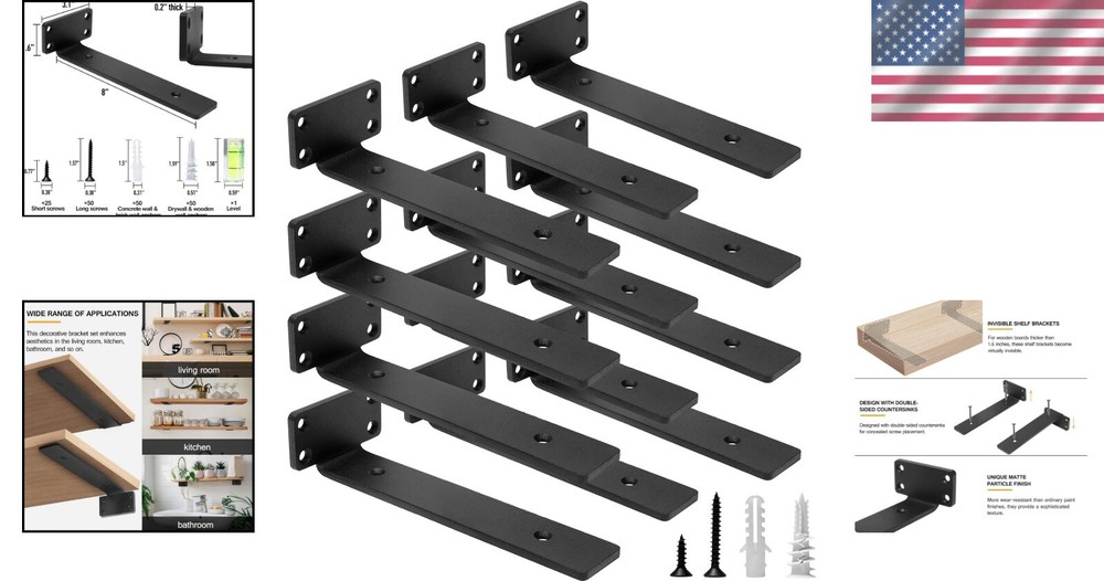 Heavy-Duty 8-Inch Cast Iron Floating Shelf Brackets - 12 Pack for DIY Shelving ‹ › ‹ › ‹ › ‹ › ‹ › ‹ › ‹ › Heavy-Duty 8-Inch Cast Iron Floating Shelf Brackets - 12 Pack Transform your space with ease using our exceptional Heavy-Duty 8-Inch Cast Iron Floating Shelf Brackets. Ideal for your DIY shelving projects, these brackets ingeniously blend functionality and style, ensuring your shelves not only look great but also stand the test of time. Features: Heavy-Duty & 90° Angle: Crafted from high-quality steel, each pair of the 1/5-inch thick brackets can support up to 150 lbs, ensuring a reliable hold. The precise 90° angle prevents any tilt, making storage secure. Hidden & Countersunk Design: With a height of only 1.6 inches, enjoy a clean aesthetic as the bracket seamlessly hides between the wall and shelf. Designed for both upward and downward use, countersunk screws ensure smooth installation without visible fasteners. Matte Finish: The matte black finish offers a sleek, modern vibe that beautifully complements any decor. With a textured surface for rust resistance, these brackets promise durability and lasting performance. DIY Storage Rack: This versatile set includes 12 decorative L brackets, perfect for creating stunning, open wall-mounted shelves in kitchens, bathrooms, bedrooms, offices, and more. Customer Service: Should you encounter any issues, our dedicated team is ready to assist you swiftly and efficiently. Step-by-Step Installation Guide: Mark Points: Identify where the holes will go and mark them accurately. Insert Anchors: Use a screwdriver to secure anchors into the drywall. Attach Brackets: Utilize the included long screws to fasten each bracket securely to the wall. Repeat for Other Brackets: Follow the installation steps for any additional brackets needed. Secure Planks: Finally, attach your chosen shelf to the installed brackets with the short screws provided. Why Choose Our Floating Shelf Brackets? Say goodbye to unstable shelving and embrace the combination of strength and style with our Heavy-Duty Cast Iron Floating Shelf Brackets. Perfectly engineered for DIY enthusiasts and home décor lovers alike, these brackets not only secure your shelves but elevate your interior spaces with their modern design. Experience quality, ease of installation, and lasting support—order your set today and start creating your perfect shelf! Shipping Free & Fast Shipping - We offer free shipping to most of the USA with a normal delivery time of 3-7 days. However, due to the current situation, additional delivery time (up to 3 weeks) may be required for some items. Alternative Carriers - We may use alternative carriers (e.g. USPS, FedEx, UPS, etc.) to ensure your package arrives safely and on time. Due to the use of multiple carriers, we are unable to provide a tracking number automatically. Handling Time - Orders are processed and shipped within 1-2 business days of receiving cleared payment. Shipping Restrictions - Shipping to Alaska, Hawaii, Puerto Rico, Guam, and other US territories may incur shipping charges or delivery restrictions. Please contact us before ordering, or your order can be refunded/cancelled. State Restrictions - There may be restrictions based on your state of purchase. For example, certain items may not be shipped to California due to state regulations. Contact for Tracking Updates - If you require tracking updates or have any concerns about the delivery of your order, please feel free to contact us, and we will be happy to assist you. Return 30-Day Hassle-Free Returns - We want you to be completely satisfied with your purchase. If you are not, you can return the item within 30 days of receiving it for a full refund or exchange. Easy Return Process - To start a return, simply contact us and we will provide you with a prepaid return shipping label and detailed instructions. Restocking Fee - There are no restocking fees for returns. However, the buyer is responsible for return shipping costs if the return is not due to a seller's error. Refund Processing Time - Refunds will be processed within 5 business days of receiving the returned item in its original condition. Payment We accept all major credit cards, PayPal, and Apple Pay for your convenience. Your payment information is secure and encrypted to ensure a safe and seamless transaction. Please complete your payment within 3 days of purchase to avoid any delays in shipping. Feedback Your feedback is extremely important to us. We strive to provide the best products and customer service possible. If you are satisfied with your purchase, please take a moment to leave us a positive review. If you have any concerns or issues with your order, please contact us before leaving negative feedback. We are committed to resolving any problems and ensuring your satisfaction. Contact Us If you have any questions or concerns, please feel free to reach out to our customer support team. You can contact us through the eBay messaging system. We are available Monday to Friday, 9:00 am to 5:00 pm EST, and we will do our best to respond to your inquiry within 24 hours. Buy it now and enjoy a pleasant shopping experience! UPC: Not Set Unit Quantity: 12 Set Includes: Shelf Brackets Material: Cast Iron,Steel Mounting: Wall Mounted Features: Heavy Duty,Countersunk Design,Rust Resistant Room: Bathroom,Bedroom,Kitchen,Office,Garage,Study,Powder Room Department: Adults Theme: Not Set Year Manufactured: Not Set Required Tools: Screwdriver Brand: Unbranded Item Height: Floating Shelf Brackets Item Length: Floating Shelf Brackets Item Width: Floating Shelf Brackets Number of Shelves: 0 Type: Bracket Shelf Pattern: Not Set Style: Industrial Color: Black Number of Items in Set: 12 Door Mechanism: Not Set Maximum Weight Capacity: 150 lb Item Weight: 0.317 oz Product Line: Not Set Maximum Weight per Shelf: 150 lb MPN: Not Set Model: Not Set Shape: Rectangle Finish: Matte Wood Tone: Not Set Distance from Floor to Bot