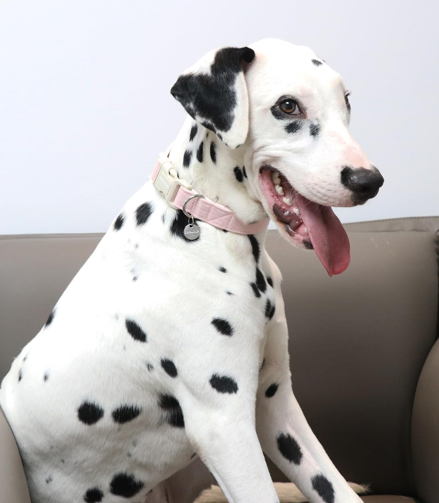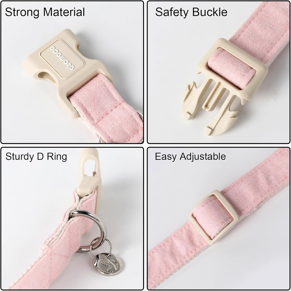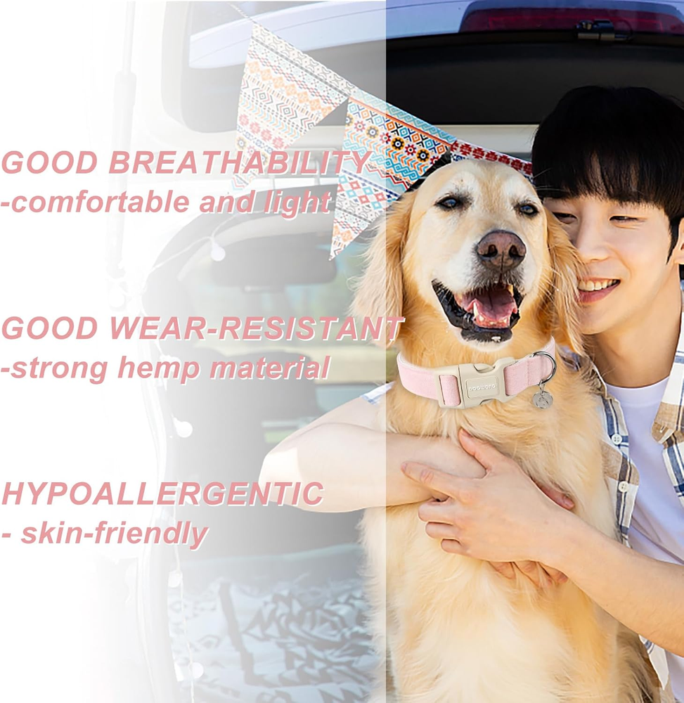 Heavy-Duty Adjustable Pink Cotton Hemp Dog Collar Soft Natural Fabric