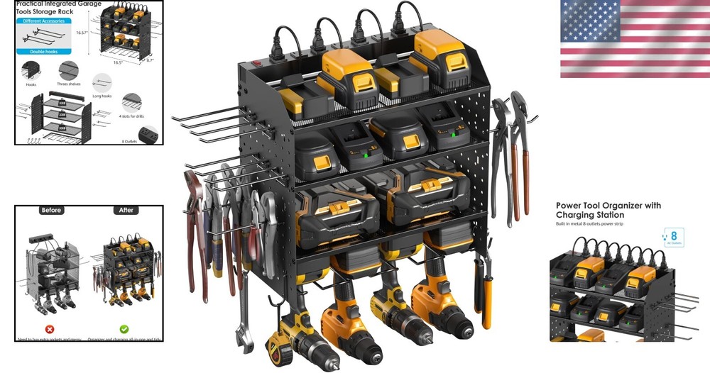Heavy-Duty Power Tool Organizer with Adjustable Shelves & Surge Protection ‹ › ‹ › ‹ › ‹ › ‹ › ‹ › ‹ › ‹ › ‹ › Heavy-Duty Power Tool Organizer Create a seamless work environment with our Heavy-Duty Power Tool Organizer, designed for convenience and efficiency. This elegant black wall mount organizer not only provides ample storage but also enhances the aesthetic of your workspace. Features: Adjustable shelves with 4-layer structure for customized storage. Innovative pegboard design includes 4 slots, 4 hooks, 4 long pegboard hooks, and 4 double pegboard hooks. Integrated power strip with 8 outlets, allowing simultaneous charging for multiple rechargeable tools. 10ft power cord included for extended and accessibility. Heavy gauge steel construction ensures durability and longevity. Surge protection of 1200J safeguards your equipment. Utility rack dimensions: L:16.5in * W:8.7in * H:16.57in. Easy assembly, capable of connecting multiple shelves for expanded storage. Benefits: Efficiently organizes and stores tools, saving valuable bench space. Convenient charging station eliminates the hassle of searching for sockets. Versatile design accommodates a range of tools including hammers, drills, and batteries. Robust enough to hold heavy machines while remaining stylish. An ideal gift for Father's Day, Christmas, or any special occasion. Why choose our Heavy-Duty Power Tool Organizer? If you’re looking for the perfect blend of functionality and style, our Heavy-Duty Power Tool Organizer is designed to meet all your needs. With adjustable shelving and a powerful surge-protected charging station, it keeps everything you need within while maintaining a clean look in your workspace. Invest in organization and efficiency – order your Heavy-Duty Power Tool Organizer today and transform your workshop into a haven of productivity! Shipping Free & Fast Shipping - We offer free shipping to most of the USA with a normal delivery time of 3-7 days. However, due to the current situation, additional delivery time (up to 3 weeks) may be required for some items. Alternative Carriers - We may use alternative carriers (e.g. USPS, FedEx, UPS, etc.) to ensure your package arrives safely and on time. Due to the use of multiple carriers, we are unable to provide a tracking number automatically. Handling Time - Orders are processed and shipped within 1-2 business days of receiving cleared payment. Shipping Restrictions - Shipping to Alaska, Hawaii, Puerto Rico, Guam, and other US territories may incur shipping charges or delivery restrictions. Please contact us before ordering, or your order can be refunded/cancelled. State Restrictions - There may be restrictions based on your state of purchase. For example, certain items may not be shipped to California due to state regulations. Contact for Tracking Updates - If you require tracking updates or have any concerns about the delivery of your order, please feel free to contact us, and we will be happy to assist you. Return 30-Day Hassle-Free Returns - We want you to be completely satisfied with your purchase. If you are not, you can return the item within 30 days of receiving it for a full refund or exchange. Easy Return Process - To start a return, simply contact us and we will provide you with a prepaid return shipping label and detailed instructions. Restocking Fee - There are no restocking fees for returns. However, the buyer is responsible for return shipping costs if the return is not due to a seller's error. Refund Processing Time - Refunds will be processed within 5 business days of receiving the returned item in its condition. Payment We accept all major credit cards, PayPal, and Apple Pay for your convenience. Your payment information is secure and encrypted to ensure a safe and seamless transaction. Please complete your payment within 3 days of purchase to avoid any delays in shipping. Feedback Your feedback is extremely important to us. We strive to provide the best products and customer service possible. If you are satisfied with your purchase, please take a moment to leave us a positive review. If you have any concerns or issues with your order, please contact us before leaving negative feedback. We are committed to resolving any problems and ensuring your satisfaction. Contact Us If you have any questions or concerns, please feel free to out to our customer support team. You can contact us through the eBay messaging system. We are available Monday to Friday, 9:00 am to 5:00 pm EST, and we will do our best to respond to your inquiry within 24 hours. Buy it now and enjoy a pleasant shopping experience! Item Diameter: NA Item Weight: 10.14 Unit Quantity: 1 Features: Wall Mount,Charging Station,Pegboard Design,4 Layer Structure,10FT Power Strip,Surge Protection,Adjustable Layer,Easy to Assemble,Heavy Gauge Steel,Hooks for Tools Type: Tool Storage Bin Number of Items: 1 Material: Alloy Steel Number of Drawers: 0 Size: Medium Capacity: 33 lb Color: Black Finish: Painted Unit Type: lb