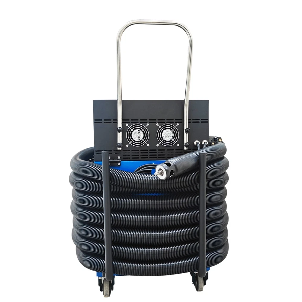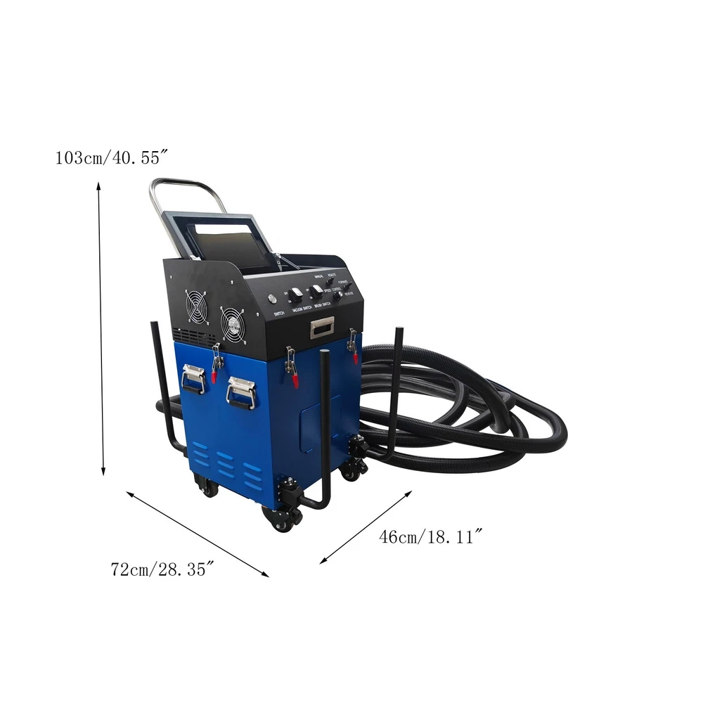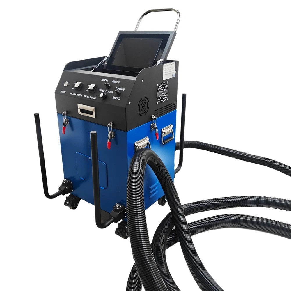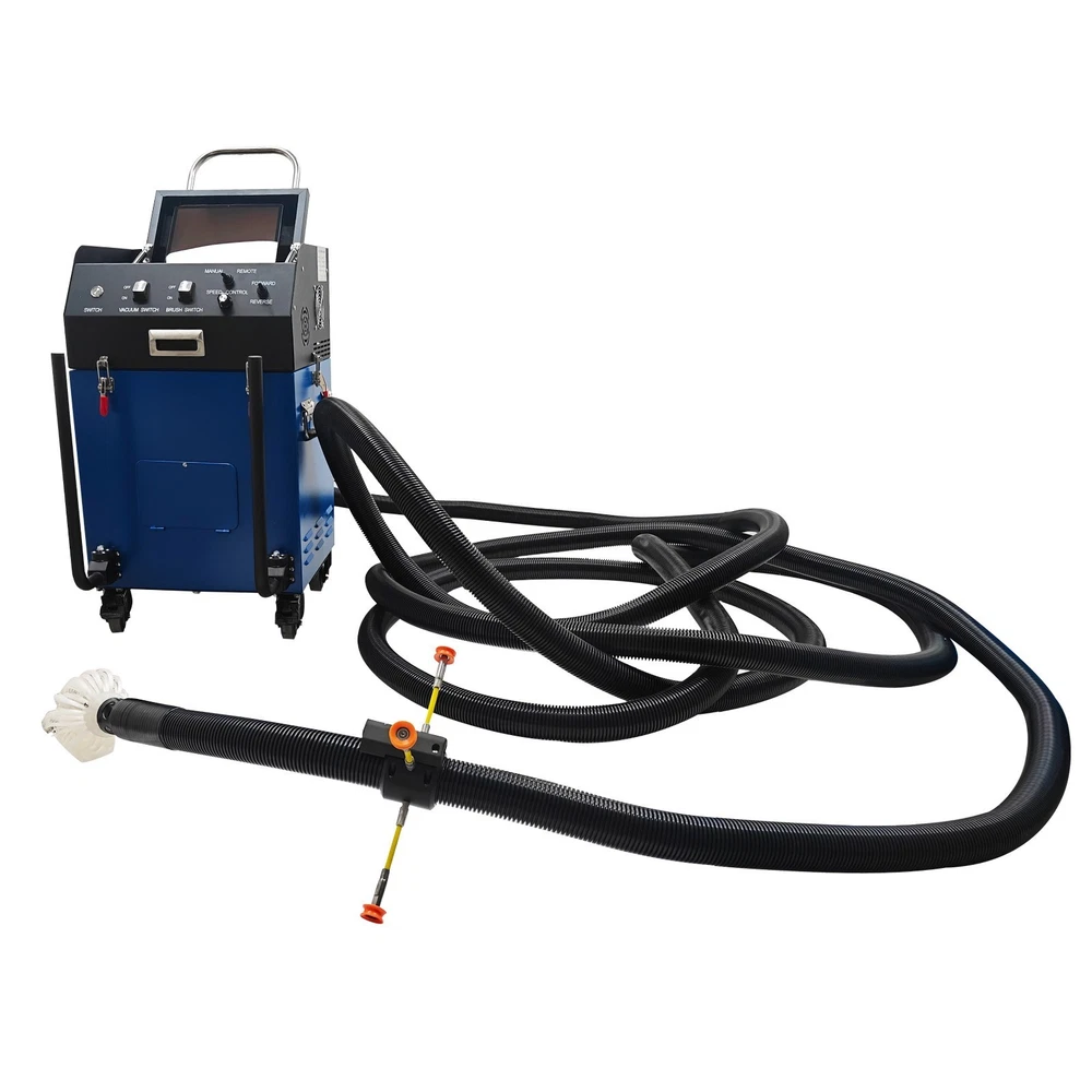 Air Duct Cleaning and Suction Integration Machine Duct Cleaning Machine 110V Product Overview This is an efficient ventilation duct cleaning machine. The brush disc is driven by a flexible shaft to rotate so as to loosen dust, the vacuum cleaner at the front end simultaneously sucks the dust into a collection bag, achieving simultaneous cleaning and dust suction. The machine is equipped with a high-definition camera, and the operator can observe the duct interior operation conditions in real time and records videos for documentation. The whole duct cleaning machine is small in size and light in weight, can be operated by a single worker to accomplish duct cleaning in hotels, restaurants and similar places and is an ideal choice for air duct cleaning and maintenance. Product Parameters Voltage 110V/60Hz Power 2800W Rotating Speed 0-1000rpm Applicable Duct Diameter 100-800mm (3.9-31.5 inches) Length of Flexible Shaft 15m (49.2ft) Guide Supports 15.5cm*4pcs, 21cm*4pcs Size of Flat Panel Display 11in Camera 2-megapixel high-definition wide-angle camera Remote Control Range of Remote Controller ≤ 24m (78.7ft) (Unobstructed) Note: For transportation safety, no batteries are included in the remote controller. Please prepare batteries by yourself. Precaution 1. Before starting the machine, ensure the flexible shaft is fully extended. Failure to do so will twist off the shaft core. Any accessory damage caused by this will be at the customer's own expense for replacement parts. 2. Wear safety goggles and protective gloves before operation. During operation, do not touch the transmission device to avoid danger. 3. Place the machine on a clean, dry and stable ground. Keep the machine clean at all times. 4. Do not operate the machine when the environmental temperature is above 40˚C. 5. The machine must be grounded. Ensure the power supply matches the rated voltage of the machine. 6. If the tablet computer is not in use for an extended period, fully charge it before turning it off. Recharge it fully and power it on to activate it once every other month. 7. After operation, clean the dust bag timely to prevent reduced suction power or damage to the fan. 8. Handle the camera with care to avoid collision damage during use. Product Features 1. The machine is suitable for comprehensive sweeping and dust suction of round ducts, rectangular ducts, horizontal ducts, vertical ducts and other ducts, has a wide applicable diameter range of 100-800mm, and is applicable to most commercial and industrial ventilation systems. 2. The machine is equipped with a 2800W high-power motor and dual negative-pressure fans with a large air volume of 2000m³/h, ensuring the powerful vacuum suction. 3. The machine features a high-definition camera for real-time monitoring and video recording, and is equipped with a 160˚ wide-angle lens to clearly display the cleaning effect inside the duct. A branded tablet computer is designed for lossless HD image transmission, enabling intuitive quality control. 4. The suction and cleaning integrated machine can be operated by a single person, reducing the labor cost and improving work efficiency. 5. The main unit is equipped with a hose winding support frame, which effectively stores the flexible hose, saves the storage space and facilitates transportation and on-site transfer. Control Panel The control panel is of an integrated structure, achieves independent control over vacuum suction, brush operation, speed regulation, mode selection and rotation direction control, is clear and visual in function division and effectively avoids misoperation. Flat Panel Display The 11-Inch flat panel display enables the operator monitor to observe and monitor the duct interior cleaning state in real time, effectively improving the cleaning quality and effect. It is convenient to store and resistant to dust and collision. Filtering Assembly The wrinkle type filter materials are adopted to substantially increase the effective filter area and effectively filter various pollutants away. The filtering assembly is matched with the fans to prevent dust from entering the machine and prolong the service life. Flexible Shaft The 15m flexible shaft is used in conjunction with the brushes and guide supports to achieve effective cleaning and dust suction. It can be effectively wound and stored, greatly saving space and keeping the environment clean and neatly. Fixing Buckles The fixing buckles can be quickly tightened and released to achieve combination and separation of the top unit and the box body, facilitating dust removal and maintenance, improving the operation efficiency and ensuring the operation safety. Universal Wheels The machine can be easily pushed to move in different working environments through the universal wheels, and the flexible movement and environmental adaptability are greatly enhanced. The brake design achieves stable fixing of the machine on site. Operation Method 1. Take down the flexible hose, connect one end of the hose to the main unit, and ensure the buckle is tightly connected. Install a brush head with the appropriate size at the other end according to the working conditions. 2. Install the guide frame suitable for the duct around the camera. 3. Ensure the dust bag is installed in place to prevent dust from damaging the fan. 4. Start the machine, connect the main unit to the tablet computer. Place one end of the brush head into the duct and start operation. 5. Clean the dust bag after the operation is completed. Product Display Item Included (022869): 1 x Air Duct Cleaning and Suction Integration Machine 110V Shipping & Handling Details Default Shipping Cost or Free Shipping Information: Default shipping cost or free shipping service is only for the lower 48 United States by UPS Ground or USPS. Other areas or needs other shipping ways, please contact us. Buyers from Guam, Puerto Rico, Virgin Islands, American Samoa, Alaska, Hawaii, PO Boxes, APO/FPO addresses or other countries/are