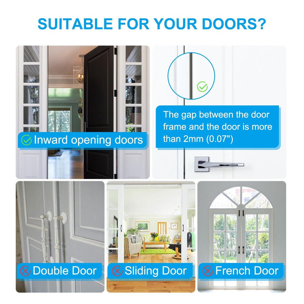Document The high-security door reinforcement locks help prevent doors from being knocked away, enhancing your home security and keeping you and your family safe! Make sure none of the doors can be opened from the outside.SpecificationColor: SilverMaterial: aluminum AlloyMaximum Withstand Capacity: 800 LbsMounting Plate Size: 63.5 x 56 x 1.95 mm/ 2.5 x 2.2 x 0.08 inch (L*W*Thickness)Lock Part Size: 76 x 25.4 x 35 mm/ 2.99 x 1 x 1.38 inch (L*W*H)Screw Mounting Distance: 20mm/ 0.79 inchScrew Length: 28.9mm/ 1.14 inchPacking List: 1 x Door Reinforcement Lock with 4 ScrewsAdvantage1. The security door lock is made of aluminum alloy with electroplating technology on the surface, which is rust-proof, moisture-proof, corrosion-resistant, comfortable to touch, durable, and has a long service life.2. The home anti-theft door lock is a tamper-resistant, child-safe lock that prevents unauthorized entry through lock bumping. Designed to withstand up to 800 pounds of force when opening an interior door, it enhances home security and prevents doors from being knocked away, keeping your family safe.InstructionEquipped with 4 pieces of 28.9mm(1.13") screws and operation manual to help ensure an easy and quick installation.To unlock, pinch the top and bottom of the door lock. Then slide the lock sideways along the door towards the hinge direction until it can be pulled outward.NOTE: Please measure the door plate thickness before ordering. Home Security Door Lock Aluminum Reinforcement Lock Withstand 800Lbs Silver The high-security door reinforcement locks help prevent doors from being knocked away, enhancing your home security and keeping you and your family safe! Make sure none of the doors can be opened from the outside. Specification Color: Silver Material: aluminum Alloy Maximum Withstand Capacity: 800 Lbs Mounting Plate Size: 63.5 x 56 x 1.95 mm/ 2.5 x 2.2 x 0.08 inch (L*W*Thickness) Lock Part Size: 76 x 25.4 x 35 mm/ 2.99 x 1 x 1.38 inch (L*W*H) Screw Mounting Distance: 20mm/ 0.79 inch Screw Length: 28.9mm/ 1.14 inch Packing List: 1 x Door Reinforcement Lock with 4 Screws Advantage 1. The security door lock is made of aluminum alloy with electroplating technology on the surface, which is rust-proof, moisture-proof, corrosion-resistant, comfortable to touch, durable, and has a long service life. 2. The home anti-theft door lock is a tamper-resistant, child-safe lock that prevents unauthorized entry through lock bumping. Designed to withstand up to 800 pounds of force when opening an interior door, it enhances home security and prevents doors from being knocked away, keeping your family safe. Instruction Equipped with 4 pieces of 28.9mm(1.13") screws and operation manual to help ensure an easy and quick installation. To unlock, pinch the top and bottom of the door lock. Then slide the lock sideways along the door towards the hinge direction until it can be pulled outward. NOTE: Please measure the door plate thickness before ordering. Hot Item Payment 1.We accept eBay payment . 2.Payment must be received within 7 business days of auction closing. Shipping 1.We ship to your eBay or Paypal address. Please make sure your eBay and Paypal address is correct before you pay. 2.Items will be shipped within 1-3 business day when we received payment. 3.Delivery time depends on destination and other factors. Description Policy Home Security Door Lock Aluminum Reinforcement Lock Withstand 800Lbs Silver The high-security door reinforcement locks help prevent doors from being knocked away, enhancing your home security and keeping you and your family safe! Make sure none of the doors can be opened from the outside. Specification Color: Silver Material: aluminum Alloy Maximum Withstand Capacity: 800 Lbs Mounting Plate Size: 63.5 x 56 x 1.95 mm/ 2.5 x 2.2 x 0.08 inch (L*W*Thickness) Lock Part Size: 76 x 25.4 x 35 mm/ 2.99 x 1 x 1.38 inch (L*W*H) Screw Mounting Distance: 20mm/ 0.79 inch Screw Length: 28.9mm/ 1.14 inch Packing List: 1 x Door Reinforcement Lock with 4 Screws Advantage 1. The security door lock is made of aluminum alloy with electroplating technology on the surface, which is rust-proof, moisture-proof, corrosion-resistant, comfortable to touch, durable, and has a long service life. 2. The home anti-theft door lock is a tamper-resistant, child-safe lock that prevents unauthorized entry through lock bumping. Designed to withstand up to 800 pounds of force when opening an interior door, it enhances home security and prevents doors from being knocked away, keeping your family safe. Instruction Equipped with 4 pieces of 28.9mm(1.13") screws and operation manual to help ensure an easy and quick installation. To unlock, pinch the top and bottom of the door lock. Then slide the lock sideways along the door towards the hinge direction until it can be pulled outward. NOTE: Please measure the door plate thickness before ordering. Hot Item Payment 1.We accept eBay payment . 2.Payment must be received within 7 business days of auction closing. Shipping 1.We ship to your eBay or Paypal address. Please make sure your eBay and Paypal address is correct before you pay. 2.Items will be shipped within 1-3 business day when we received payment. 3.Delivery time depends on destination and other factors.