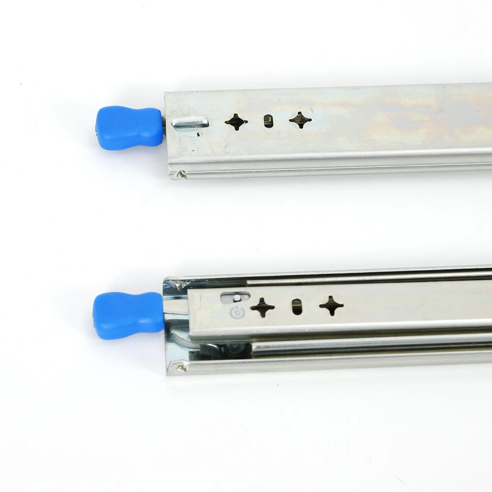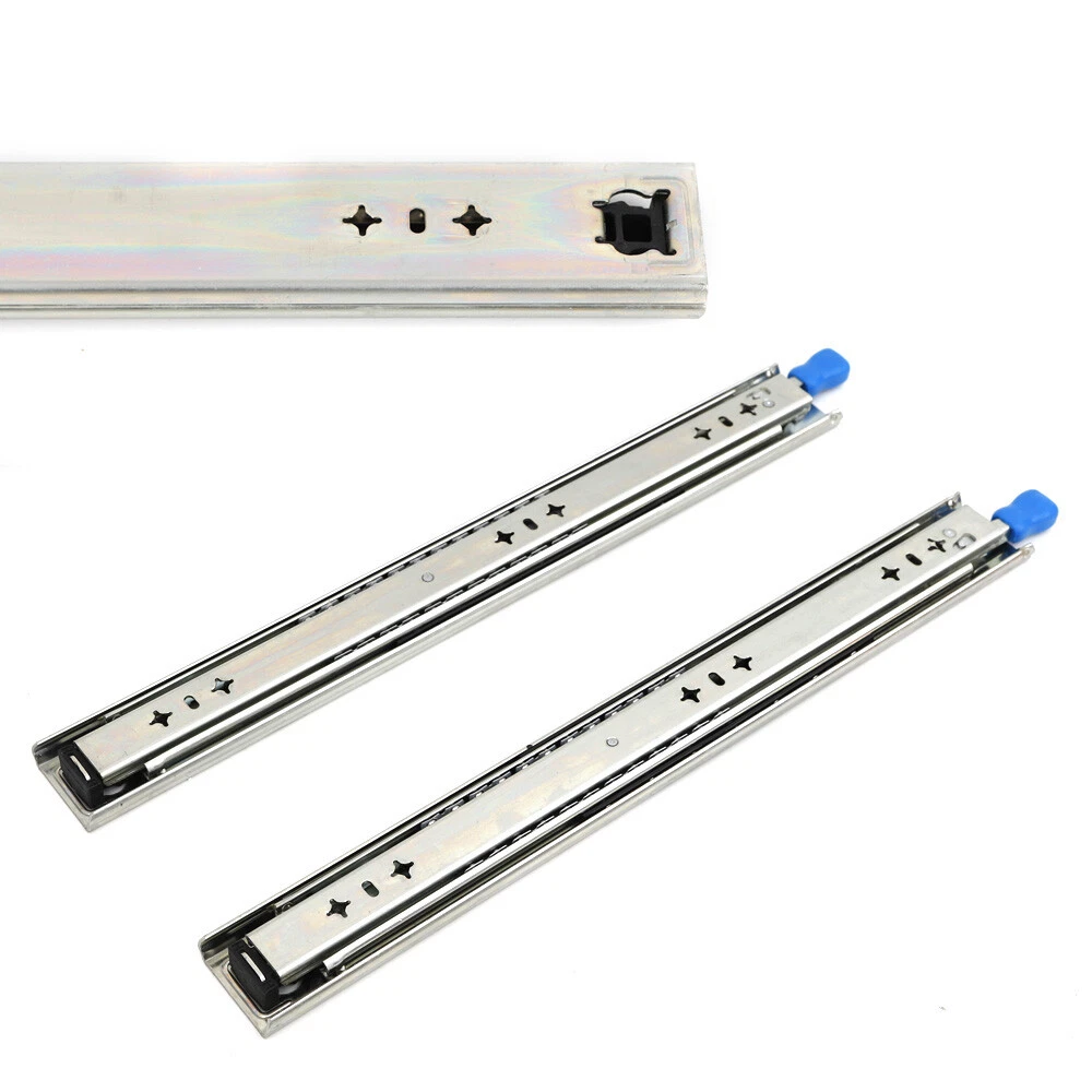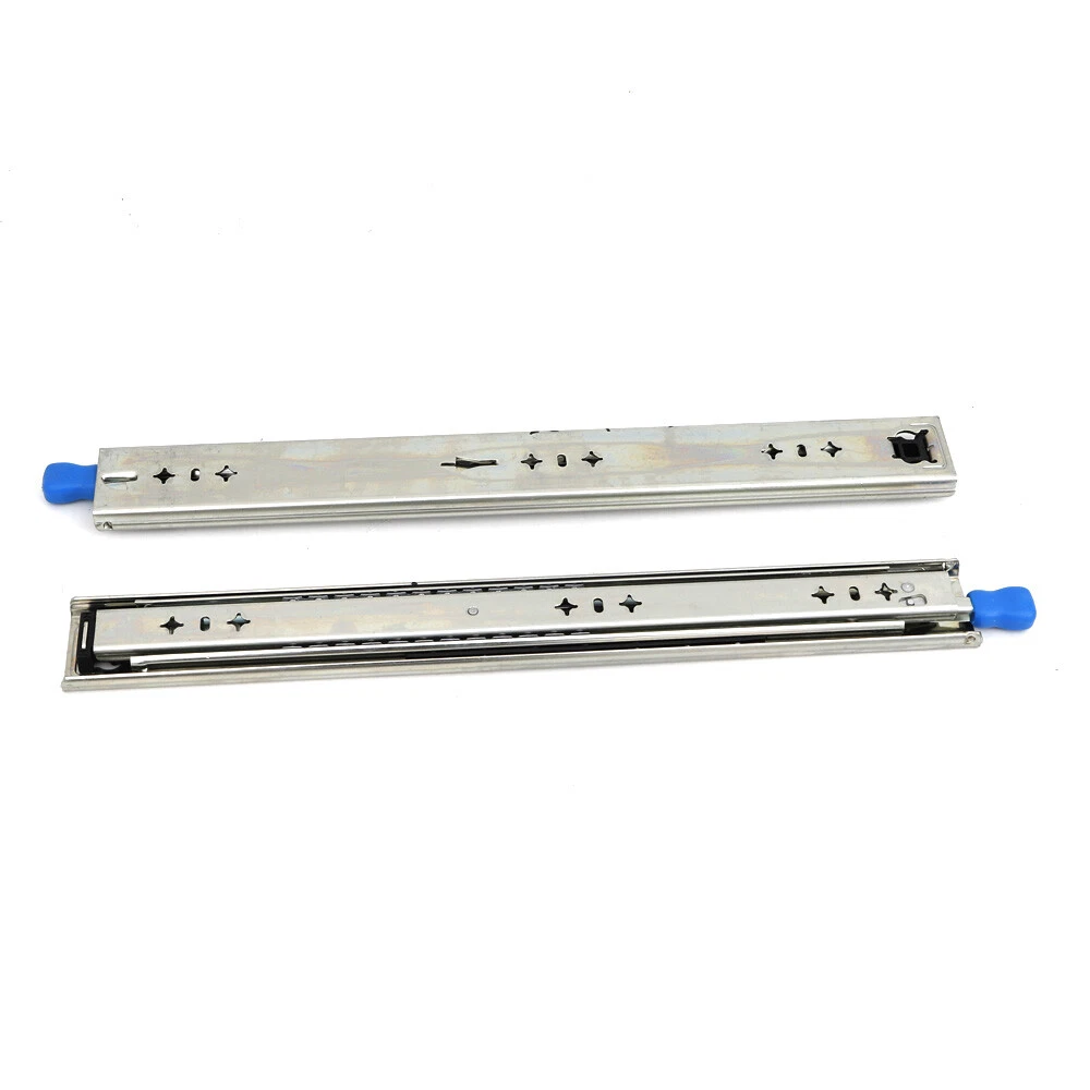 Package Included: 1 Pair Heavy Slide (excluding mounting brackets and screws) Heavy-Duty Ball Bearing Drawer Runners Tool Cabinets Lock Slide Rail 18"-40" Heavy-Duty Ball Bearing Drawer Runners Tool Cabinets Lock Slide Rail 18"-40" This is a new heavy-duty lock slide rail with good stability, small swing, smooth sliding, easy to use, suitable for all kinds of cupboard, tool cabinets and other large equipment, is the furniture industry, caravan and industrial field of high-quality choice. Specification: Colour: Silver Type: Heavy slides Material: high quality cold rolled sheet Bearing capacity: 120KG Surface treatment: blue zinc, electrophoretic black Installation Form: Drawer Side Installation Specifications:18"(450mm),20"(500mm),22"(550mm),24”(600mm),26”(650mm),28"(700mm),30”(750mm),32" (800mm),34”(850mm),36”(900mm),38”(950mm),40”(1000mm). Origin Length: 17.7 ", 19.6”,21.6", 23.6”,25.6”,27.5”,29.5”, 31.4",33.5”,35.4”,37.4”,39.3”. Extended Length: 35.4”,39.3”, 43.3",47.2”, 51.7”,55.1",59.1”,62.9",66.8”,70.8”,74.7”,78.7”. Features: 1. The surface is coated with high density zinc metal, which can effectively prevent the corrosion of the product surface and prolong the service life of the product. 2. Anti-skid rubber pad, increase friction, put back track colloidal fall and open automatically after closing. 3. Anti-skid device with lock, suitable for heavy industrial equipment. 4. Solid steel ball, check can bear 120 KG (the longer the pull out, the smaller the load). 5. Three-section track design, effective load-bearing, precise contraction. Note: -Due to different producing batches, product details might be a little different. If you minding the difference, please buy it carefully. -Please allow 1-3MM differs due to manual measurement. -Due to the different display and different light, the picture may not reflect the actual color of the item. Thanks for your understanding. Package Included: 1 Pair Heavy Slide (excluding mounting brackets and screws) Payment Delivery details Terms of sales About us Contact us Payment We accept ebay payment 。 Fees such as import duties, taxes are not included in the item price or shipping costs. These charges are the buyer's responsibility. Delivery details Shipping: 2-9 working days to: USA Terms of sales We maintain high standards of excellence and strive for hundred percent customer satisfaction. Feedback is very important to us. We hope that you contact us immediately before you give neutral or negative feedback, so that we can address your concerns. It is impossible to address issues if we do not know about them! About us Your satis faction is our ultimate goal. We work hard to earn your trust and future business. Our certified technicians have tested each item before shipping. The unit comes with 1 year limited warranty on all manufacturing defects. a) If you receive a defective item, you may return it or ask for a discount. Please contact us within 14 days after you receive the package. b) What you returned must be intact and in its original packaging as re? u. Customer is responsible for shipping costs of the returned item. c) We will cover the cost of shipping back t with the shipping rate indicated in the registration page. We will send you a new unit or refund the full payment you paid. Thank you. Contact us Business Hour Business Hour: Monday To Friday: 8:30 AM to 5:00 PM (Beijing China time) Due to time zones, our reply to your questions may not be immediately. But within above working time, we will reply your email within 24 hours. If it's non-workdays, please kindly be patient and wait till Monday. Please contact us with ebay message. Please feel free to contact us if you have any questions. Monday To Friday: 8:30 AM to 5:00 PM (Beijing China time) Due to time zones, our reply to your questions may not be immediately. But within above working time, we will reply your email within 24 hours. If it's non-workdays, please kindly be patient and wait till Monday. Please contact us with ebay message. Please feel free to contact us if you have any questions.