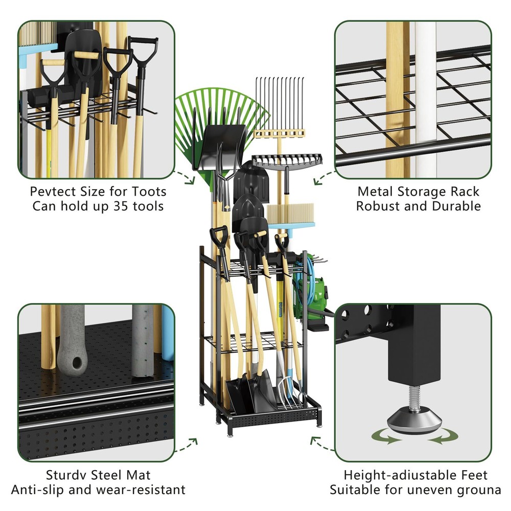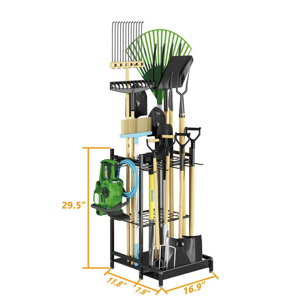 Garden Tool Organizer for Garage, Utility Storage Racks with Hooks, Metal Yard Tool Stand Holder Organizer for Long-Handled, Broom, Shovel, Rake, Sturdy Heavy Rack for Outdoor, Yard, Black STURDY AND DURABLE: This tool storage rack is made of metal and will not deform even if it withstands all the tools in the house for a long time. The surface adopts environmentally friendly spray painting process to prevent rust. Resistant to prolonged use. LARGE STORAGE: This garden tool organizer comes in two designs. It can store both long stick-shaped tools and tools with D-shaped handles. Long stick-shaped tools can be inserted upside down into the grid at the rear. Tools with D-handles can be stored in the front rack. SUITABLE FOR EVERY OCCASION: With its compact design, this tool holder takes up very little space. You can use it in any situation, garden, tool shed, garage or even doorway. There are also hooks on the side to store different items. EASY TO ASSEMBLE: We adopt the simplest screw structure. It can be easily assembled without reading the instructions. Of course we will also provide assembly instructions. Assembling a tool storage rack won't take you a lot of time. GOOD AFTER-SALES SERVICE: If you have any questions about the product after purchasing the tool holder, you can contact us by email. We will provide you with excellent service. Shipping We offer FREE shipping on all orders! We ship within Three business days of payment, usually sooner. We use a selection of shipping services such as UPS, FedEx, USPS etc. We only ship to the lower 48 states, no APO/FPO addresses or PO Boxes allowed. Local pickups and combined shipping options are not provided at this time. Return You can return a product for up to 30 days from the date you purchased it. Any product you return must be in the same condition you received it and in the original packaging. Please keep the receipt. Payment We accept payment by any of the following methods: PayPal Please pay as soon as possible after winning an auction, as that will allow us to post your item to you sooner! Feedback Customer satisfaction is very important to us. If you have any problem with your order, please contact us and we will do our best to make you satisfied. Contact Us If you have any queries, please contact us via ebay. We usually respond within 24 hours on weekdays. Please visit our eBay store to check out other items for sale! Thank you for shopping at our store.