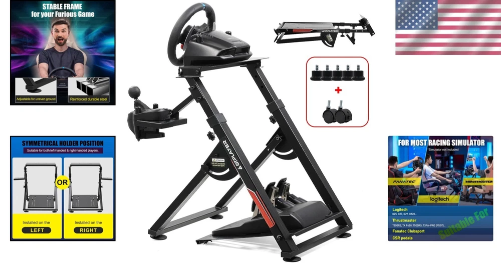Heavy-Duty Carbon Steel Wheel Stand Cockpit for Logitech & Thrustmaster Racing ‹ › ‹ › ‹ › ‹ › ‹ › ‹ › ‹ › ‹ › ‹ › ‹ › Heavy-Duty Carbon Steel Wheel Stand Cockpit Designed for Logitech & Thrustmaster Racing Wheels Key Features: High Compatibility: Universally designed to fit all racing wheels, pedals, and shifters, including Logitech G25, G27, G29, G920, G923 and Thrustmaster T300RS, TX F458, T500RS, T3PA-PRO (F1/GT) models. Fully Adjustable: Features up to 20 degrees of vertical adjustment and a height range of 20CM, ensuring a tailored driving experience for players of all sizes. Durable Metal Construction: Crafted from high-strength carbon steel, this wheel stand ensures maximum stability and sturdiness, even during the most intense races. Foldable Design: Easily fold the stand for convenient storage under furniture or in a corner, ideal for players with limited space. Multi-functional Wheels: Includes 5 fixed wheels to stabilize your chair and 2 sliding wheels for added convenience on your racing simulator. Benefits: Achieve your optimal racing posture for unparalleled comfort and performance. Experience a robust and wobble-free gaming experience. Effortlessly transport and set up the stand to share your racing passion anywhere. Enjoy a clutter-free space thanks to the foldable feature. Why Choose Our Heavy-Duty Wheel Stand? Elevate your racing game with a wheel stand that combines durability, functionality, and ergonomic adaptability. Whether you are a seasoned racer or a casual player, our Heavy-Duty Carbon Steel Wheel Stand provides the perfect basis for an exhilarating racing experience. Never compromise on quality or performance – choose a stand that matches your passion for racing. Order your Heavy-Duty Carbon Steel Wheel Stand today and take the next step towards an authentic racing simulation! Shipping Free & Fast Shipping - We offer free shipping to most of the USA with a normal delivery time of 3-7 days. However, due to the current situation, additional delivery time (up to 3 weeks) may be required for some items. Alternative Carriers - We may use alternative carriers (e.g. USPS, FedEx, UPS, etc.) to ensure your package arrives safely and on time. Due to the use of multiple carriers, we are unable to provide a tracking number automatically. Handling Time - Orders are processed and shipped within 1-2 business days of receiving cleared payment. Shipping Restrictions - Shipping to Alaska, Hawaii, Puerto Rico, Guam, and other US territories may incur shipping charges or delivery restrictions. Please contact us before ordering, or your order can be refunded/cancelled. State Restrictions - There may be restrictions based on your state of purchase. For example, certain items may not be shipped to California due to state regulations. Contact for Tracking Updates - If you require tracking updates or have any concerns about the delivery of your order, please feel free to contact us, and we will be happy to assist you. Return Please see our eBay Return Policy. Thank you. Payment We accept all major credit cards, PayPal, and Apple Pay for your convenience. Your payment information is secure and encrypted to ensure a safe and seamless transaction. Please complete your payment within 3 days of purchase to avoid any delays in shipping. Feedback Your feedback is extremely important to us. We strive to provide the best products and customer service possible. If you are satisfied with your purchase, please take a moment to leave us a positive review. If you have any concerns or issues with your order, please contact us before leaving negative feedback. We are committed to resolving any problems and ensuring your satisfaction. Contact Us If you have any questions or concerns, please feel free to reach out to our customer support team. You can contact us through the eBay messaging system. We are available Monday to Friday, 9:00 am to 5:00 pm EST, and we will do our best to respond to your inquiry within 24 hours. Thank you for supporting our small family business! UPC: Not Set Item Weight: 25.7 pounds Unit Quantity: 1 Compatible Product: Battery Pack,Console,Console, Games & Accessories,Console & Games,Controller,Game(s),Game Card,Headset,Memory Cards,Motion Sensor/Camera,Smartphone,Wii Remote Connectivity: Sim Racing Wheel Stand Compatible Model: For Microsoft Xbox 360,For Microsoft Xbox One,For Microsoft Xbox Series S,For Microsoft Xbox Series X,For Multi-Platform,For Nintendo Switch,For PC,For Sony PlayStation 2,For Sony PlayStation 3,For Sony PlayStation 4,For Sony PlayStation 5 Platform: Android,Atari 2600,Microsoft Xbox,Microsoft Xbox 360,Microsoft Xbox One,Microsoft Xbox Series X|S,Nintendo 3DS,Nintendo 64,Nintendo DS,Nintendo Game Boy,Nintendo Game Boy Advance,Nintendo Game Boy Color,Nintendo GameCube,Nintendo NES,Nintendo SNES,Nintendo Switch,Nintendo Wii,Nintendo Wii U,PC,Sega Dreamcast,Sega Genesis,Sony PlayStation 1,Sony PlayStation 2,Sony PlayStation 3,Sony PlayStation 4 Features: Ergonomic,Fully Adjustable,High Compatibility,Durable Metal Wheel Stand,Folded for storage,Multiple considerations Brand: Unbranded Type: Stand Number of Fans: 0 Maximum Number of Players: 1 Color: Black Country/Region of Manufacture: Not Set Material: Metal Cable Length: Not Set MPN: Not Set Model: Sim Wireless Range: Not Set Year Manufactured: Not Set Manufacturer Warranty: Not Set Unit Type: lb Personalize: Not Set