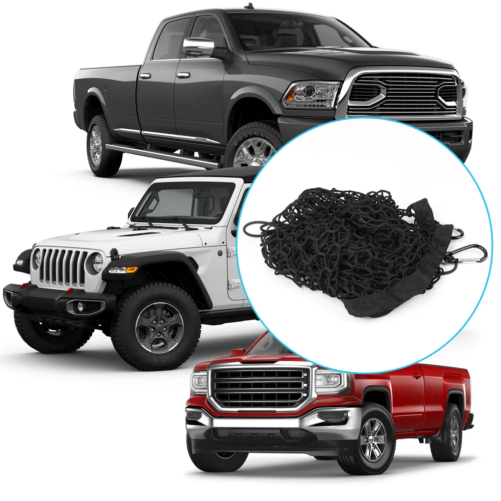 Heavy-Duty Cargo Net for Pickup Trucks with 4 Carabiner Hooks Fits Silverado F150 GMC