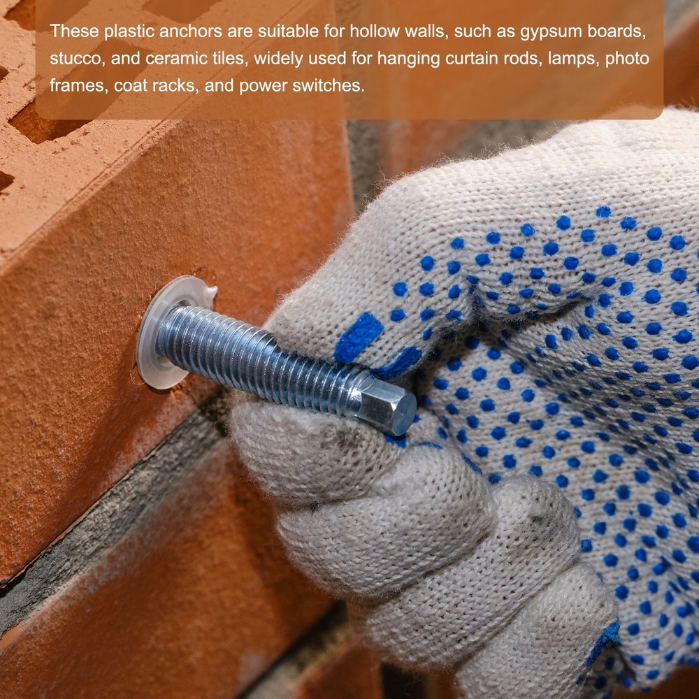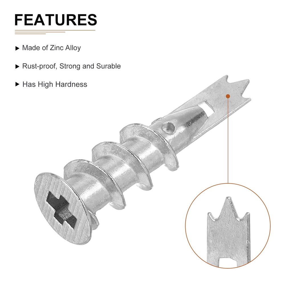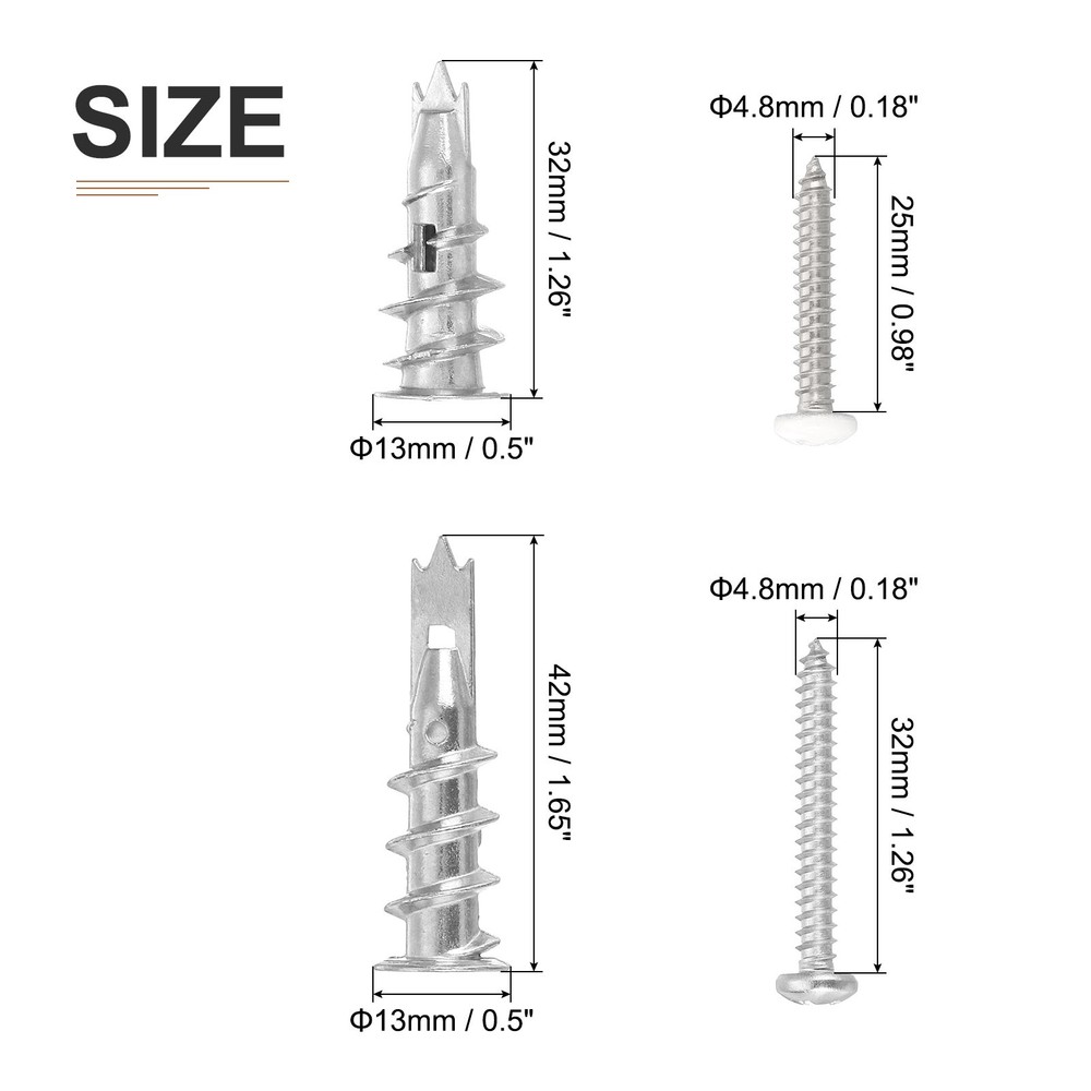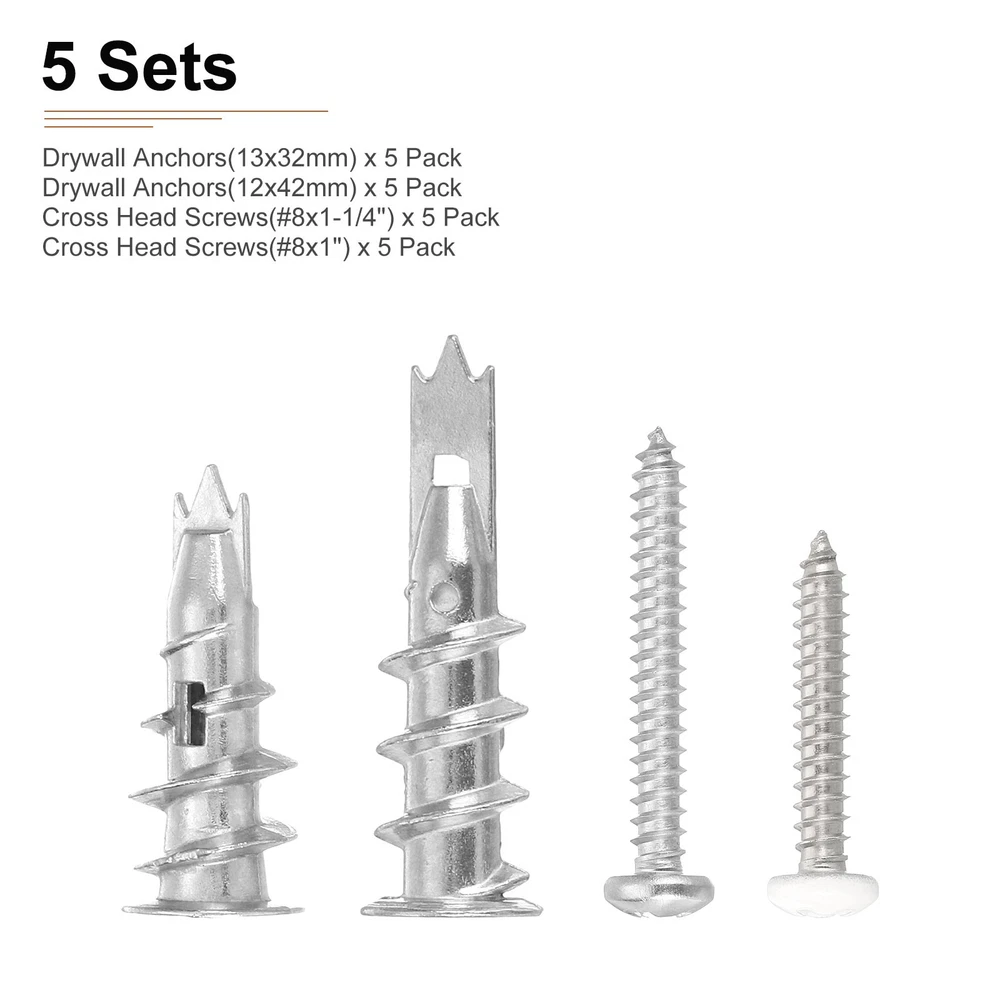Document Product Details:Material: Zinc AlloyColor: SilverSuitable Wall Thickness: 9.5-16mm/0.37-0.6"Total Expansion Tube Size: 32x13mm/1.26"x0.5"; 42x13mm/1.65"x0.5"(L*OD)Total Screw Size: 32x2.6mm/1.26"x0.1"; 25X2.6mm/0.98"x0.1"(L*T)Thread Size: #8x1-1/4"; #8x1"Package Contents: 5pcs 13x32mm; 5pcs 12x42mm Drywall Anchors; 5pcs #8x1"; 5pcs #8x1-1/4" Pan Head Fast Self Tapping Drywall ScrewsMaterial - The Drywall Anchors are made of zinc alloy, which is corrosion-resistant and high-temperature resistant. It is rust-proof, strong and durable, and can be used for a long time. The screws are made of carbon steel, which has high hardness, corrosion resistance and good performance.Feature - The deep thread design allows the threads to cut deeply into the material, providing a strong hold and engagement for drywall anchors and screw sets, locking into multiple sizes of drywall for a secure hold on drywall.Application - These self-drilling drywall anchors with screws kit are suitable for hanging bathroom, kitchen accessories, light fixtures, shelves, curtain rods, decorative racks on drywall and plaster walls.Installs Steps - These anchors are easy to install and remove. You can directly screw the expansion screws into the wall with a screwdriver without pre-drilling, which reduces dust and improves work efficiency. After inserting the anchors, insert the screw and the anchors will wedge tightly into the drywall. Drywall Anchors with Screws Kit - 5 Set - Self-Drilling Wall Anchors Kit Product Details: Material: Zinc Alloy Color: Silver Suitable Wall Thickness: 9.5-16mm/0.37-0.6" Total Expansion Tube Size: 32x13mm/1.26"x0.5"; 42x13mm/1.65"x0.5"(L*OD) Total Screw Size: 32x2.6mm/1.26"x0.1"; 25X2.6mm/0.98"x0.1"(L*T) Thread Size: #8x1-1/4"; #8x1" Package Contents: 5pcs 13x32mm; 5pcs 12x42mm Drywall Anchors; 5pcs #8x1"; 5pcs #8x1-1/4" Pan Head Fast Self Tapping Drywall Screws Material - The Drywall Anchors are made of zinc alloy, which is corrosion-resistant and high-temperature resistant. It is rust-proof, strong and durable, and can be used for a long time. The screws are made of carbon steel, which has high hardness, corrosion resistance and good performance. Feature - The deep thread design allows the threads to cut deeply into the material, providing a strong hold and engagement for drywall anchors and screw sets, locking into multiple sizes of drywall for a secure hold on drywall. Application - These self-drilling drywall anchors with screws kit are suitable for hanging bathroom, kitchen accessories, light fixtures, shelves, curtain rods, decorative racks on drywall and plaster walls. Installs Steps - These anchors are easy to install and remove. You can directly screw the expansion screws into the wall with a screwdriver without pre-drilling, which reduces dust and improves work efficiency. After inserting the anchors, insert the screw and the anchors will wedge tightly into the drywall. Hot Item Payment 1.We accept eBay payment . 2.Payment must be received within 7 business days of auction closing. Shipping 1.We ship to your eBay or Paypal address. Please make sure your eBay and Paypal address is correct before you pay. 2.Items will be shipped within 1-3 business day when we received payment. 3.Delivery time depends on destination and other factors. Description Policy Drywall Anchors with Screws Kit - 5 Set - Self-Drilling Wall Anchors Kit Product Details: Material: Zinc Alloy Color: Silver Suitable Wall Thickness: 9.5-16mm/0.37-0.6" Total Expansion Tube Size: 32x13mm/1.26"x0.5"; 42x13mm/1.65"x0.5"(L*OD) Total Screw Size: 32x2.6mm/1.26"x0.1"; 25X2.6mm/0.98"x0.1"(L*T) Thread Size: #8x1-1/4"; #8x1" Package Contents: 5pcs 13x32mm; 5pcs 12x42mm Drywall Anchors; 5pcs #8x1"; 5pcs #8x1-1/4" Pan Head Fast Self Tapping Drywall Screws Material - The Drywall Anchors are made of zinc alloy, which is corrosion-resistant and high-temperature resistant. It is rust-proof, strong and durable, and can be used for a long time. The screws are made of carbon steel, which has high hardness, corrosion resistance and good performance. Feature - The deep thread design allows the threads to cut deeply into the material, providing a strong hold and engagement for drywall anchors and screw sets, locking into multiple sizes of drywall for a secure hold on drywall. Application - These self-drilling drywall anchors with screws kit are suitable for hanging bathroom, kitchen accessories, light fixtures, shelves, curtain rods, decorative racks on drywall and plaster walls. Installs Steps - These anchors are easy to install and remove. You can directly screw the expansion screws into the wall with a screwdriver without pre-drilling, which reduces dust and improves work efficiency. After inserting the anchors, insert the screw and the anchors will wedge tightly into the drywall. Hot Item Payment 1.We accept eBay payment . 2.Payment must be received within 7 business days of auction closing. Shipping 1.We ship to your eBay or Paypal address. Please make sure your eBay and Paypal address is correct before you pay. 2.Items will be shipped within 1-3 business day when we received payment. 3.Delivery time depends on destination and other factors.