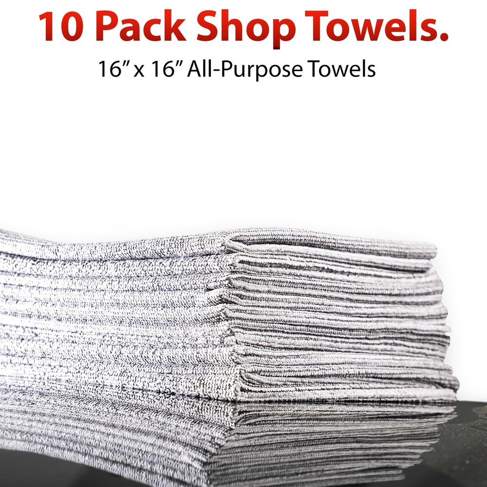 Adam's 10-Pack Shop Towels are the ultimate solution for all your tough cleaning needs! These versatile microfiber towels are perfect for cleaning up spills, wiping down dirty surfaces, and wiping your hands. Made from high-quality microfiber material, these towels are ultra-absorbent and durable, so you can use them again and again. And with a convenient 10 pack, you'll always have a fresh towel on hand when you need it. Perfect for use around the garage or workshop, these towels are designed to tackle tough dirt and grime without leaving any streaks or lint behind. Our shop towels are also great for use around the house, from cleaning up spills in the kitchen to wiping down surfaces in the bathroom. With their superior quality and versatility, they're sure to become your go-to cleaning tool for all your messy jobs. ✅ 200 GSM MICROFIBER MATERIAL, 16" X 16" - Each towel in this pack is made of high-quality 200 GSM microfiber material. This material is known for its superior absorbency, softness, and durability. Measuring at 16" X 16", our shop towels have plenty of surface area to attack any job. ✅ DURABLE AND MULTI-PURPOSE - The Adam's 10 pack Shop Towels are designed to handle tough cleaning tasks around your home, garage, or workshop. Whether you need to wipe down dirty surfaces, clean up spills, or remove stubborn dirt and grime, these towels are up to the task. They are perfect for use on automotive parts, floors, and even countertops. ✅ PERFECT FOR SCRUBBING - The towels are great for scrubbing and removing stubborn dirt and grime without damaging surfaces. They are designed to be tough enough to handle heavy-duty cleaning tasks, yet gentle enough to use on delicate surfaces like glass or plastic. The towels are also great for scrubbing stains out of fabric or upholstery. ✅ MACHINE WASHABLE - These towels are machine washable, making them easy to clean and reuse for multiple cleaning sessions. Simply toss them in the washing machine with your regular laundry, and they'll come out looking and feeling like new. The towels are also dryer safe, making them a convenient and cost-effective cleaning solution. ✅ 110% SATISFACTION GUARANTEE - At Adam’s, we strive to bring the BEST car cleaning supplies, auto detailing kits, washing accessories, microfiber towels, waxes, sealants, ceramic coatings, mops, brushes, mitts, sponges, garage tools, applicators & other high-quality car cleaning products to the car care industry. If you are not satisfied, let us know & we’ll do everything we can to make it right!