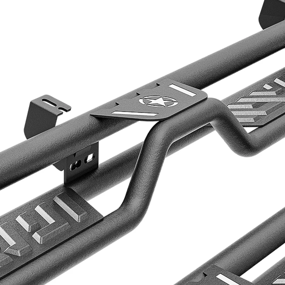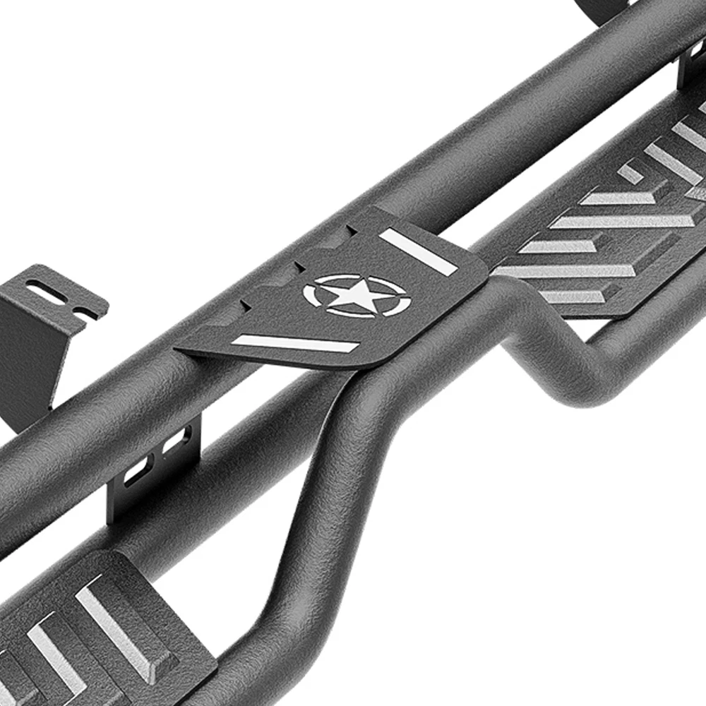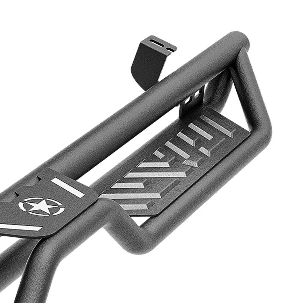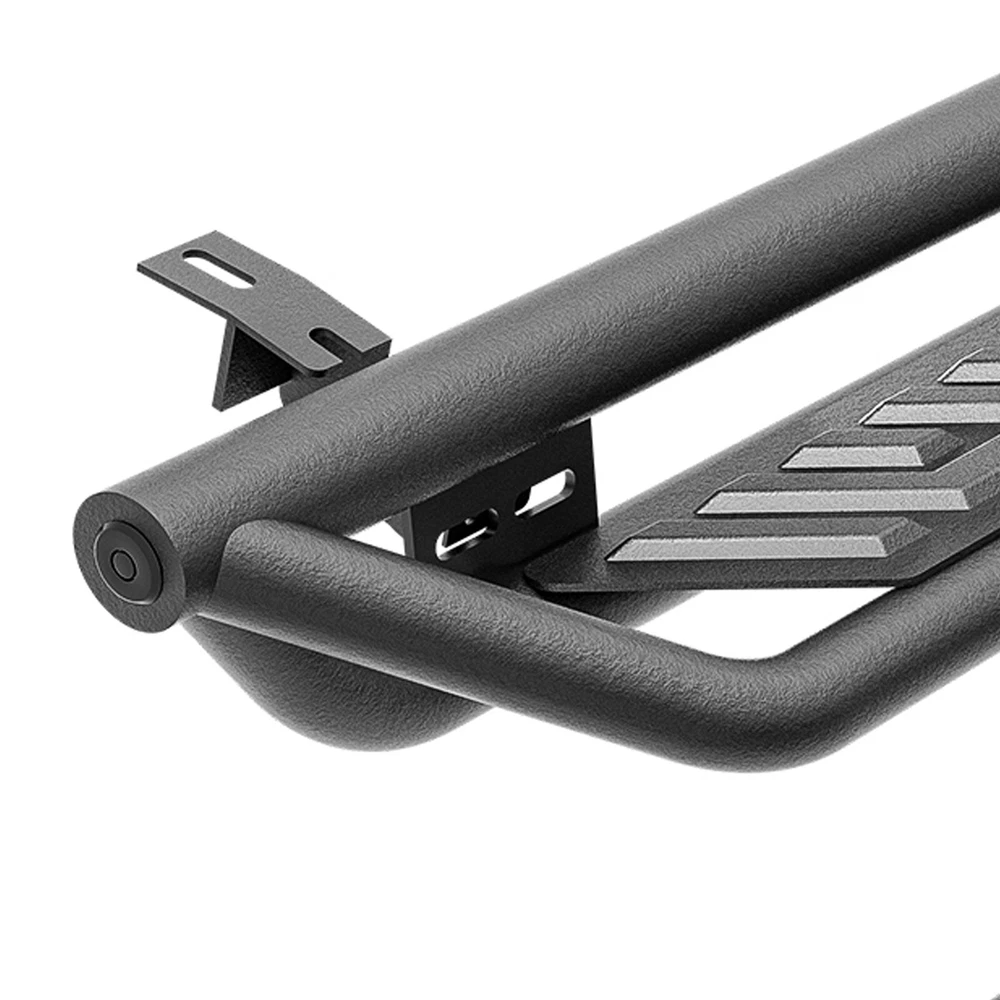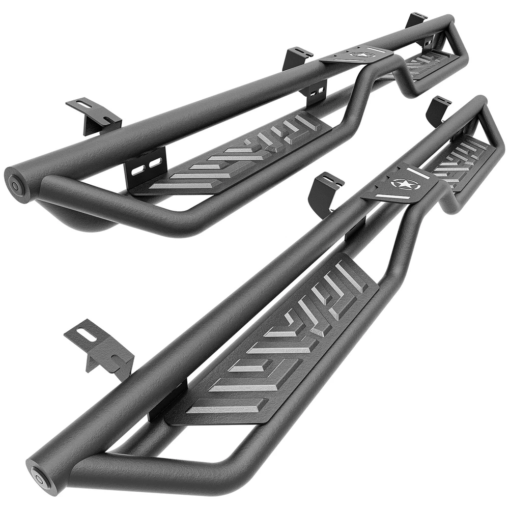 Heavy-Duty Side Steps Running Boards For 2005-2023 Toyota Tacoma Double&Crew Cab Suitable Models : Compatible with 2005-2023 Toyota Tacoma Double Cab & Crew Cab (4 Full-Size Doors) Package Includes : 2 x Running Boards Side Steps, brackets, instructions, and all necessary hardware Product Information : Product Dimensions: 76 x 7 x 6 inches Installation mode: Bolt-On Weight Limit: 550LBS Placement on Vehicle: Left and Right Item Weight: 63.14 pounds Material: Carbon Steel Color: Black (hand measurements may have an error of 2-3 mm/0.078-0.118 in) Feature: ① The side steps feature a dual-layer design, enhancing convenience for vehicles with lift kits and oversized tires, while also making roof access easier; ② The extra-thick main tube provides superior load-bearing capacity, preventing deformation and enhancing vehicle protection; ③ The stepping area is designed with a high-end textured pattern, ensuring secure and stable footing to prevent slipping; ④ The high-quality black powder coating provides outstanding rust and corrosion resistance. Constructed from heavy-duty 2mm carbon steel, each side can withstand a weight of 550 pounds. Precision laser cutting and stamping techniques contribute to a non-slip step surface and enhanced traction; Warranty Period : 2 year Standard Shipping (FedEx Ground or FedEx Home Delivery) Will usually ship within 3 business days of receiving cleared payment Suitable Models : Compatible with 2005-2023 Toyota Tacoma Double Cab & Crew Cab (4 Full-Size Doors) Package Includes : 2 x Running Boards Side Steps, brackets, instructions, and all necessary hardware Product Information : Product Dimensions: 76 x 7 x 6 inches Installation mode: Bolt-On Weight Limit: 550LBS Placement on Vehicle: Left and Right Item Weight: 63.14 pounds Material: Carbon Steel Color: Black (hand measurements may have an error of 2-3 mm/0.078-0.118 in) Feature: ① The side steps feature a dual-layer design, enhancing convenience for vehicles with lift kits and oversized tires, while also making roof access easier; ② The extra-thick main tube provides superior load-bearing capacity, preventing deformation and enhancing vehicle protection; ③ The stepping area is designed with a high-end textured pattern, ensuring secure and stable footing to prevent slipping; ④ The high-quality black powder coating provides outstanding rust and corrosion resistance. Constructed from heavy-duty 2mm carbon steel, each side can withstand a weight of 550 pounds. Precision laser cutting and stamping techniques contribute to a non-slip step surface and enhanced traction; Warranty Period : 2 year