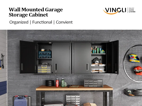 Heavy-duty Garage Wall Mount Cabinet with Locking Doors and Adjustable Shelf