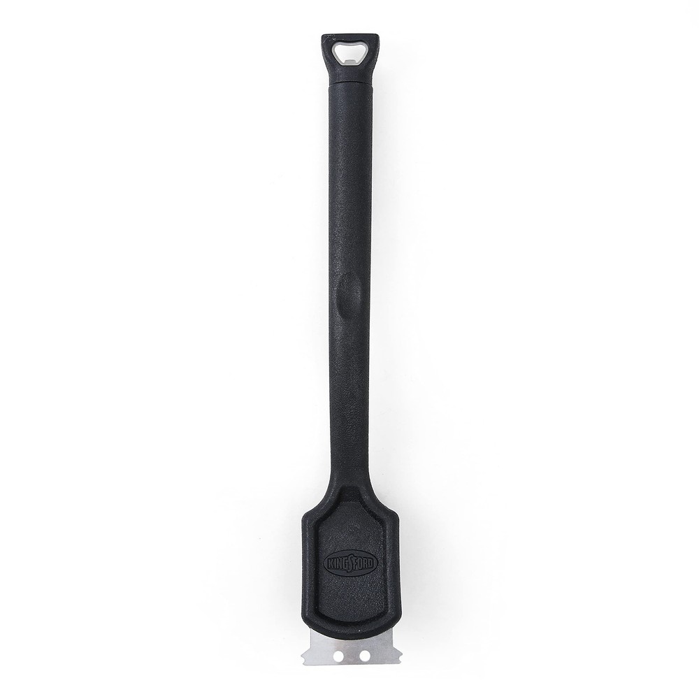 GRILL BRUSH WITH NYLON BRISTLES - The sturdy nylon bristles of this grill cleaning brush can be used to scrub & clean your cooled grill tines. Pair with Grill Cleaning Aerosol Spray to quickly deep clean your grill NYLON BRISTLES - The sturdy nylon bristles of this grill cleaning brush can be used to scrub and clean off your cooled grill tines after a day of cooking out. Great for cleaning charcoal grills, gas grills, or pellet grills STURDY METAL SCRAPER - Use the stainless steel flat scraper with convenient, non-slip rubber handle to easily and quickly scrub off thick, stuck-on messes from cooled grills. Grill brushes should not be used directly on a hot grill DISHWASHER SAFE GRILL CLEANING BRUSH - After a long day of summertime cook-out fun, clean-up can be easy with dishwasher-safe grill tools from . Check out all our BBQ Grill tools from BONUS BOTTLE OPENER - Use the bottle opener in the handle to pop the cap off your favorite bottled drinks while grilling. A great bonus that will make this one of your favorite grilling kitchen gadgets