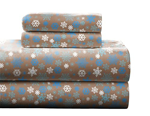 Heavyweight Flannel Cotton Queen Sheet Set 1-Piece Snow Flakes Tan