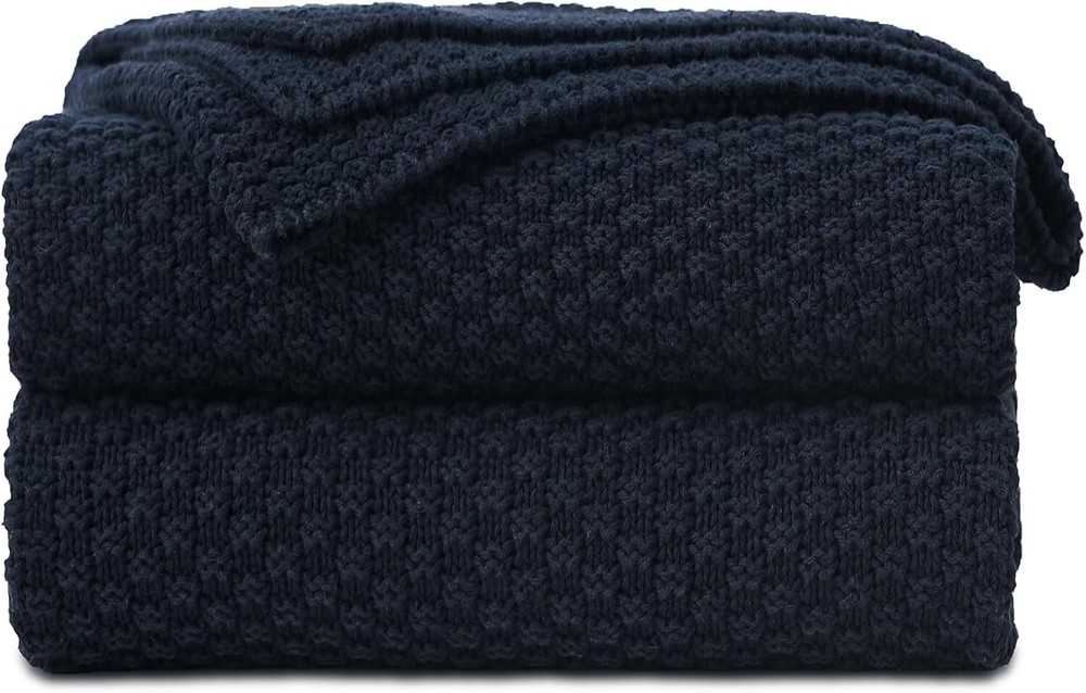 This heavyweight throw is incredibly soft and cozy—perfect for snuggling up on chilly nights. The 100% cotton knit feels luxurious, and the deep navy blue adds a stylish touch to any room. At 60" x 80", it’s generously sized, draping beautifully over couches or beds. The quality is outstanding, and it’s versatile enough for lounging, decorating, or even gifting. Definitely worth every penny!