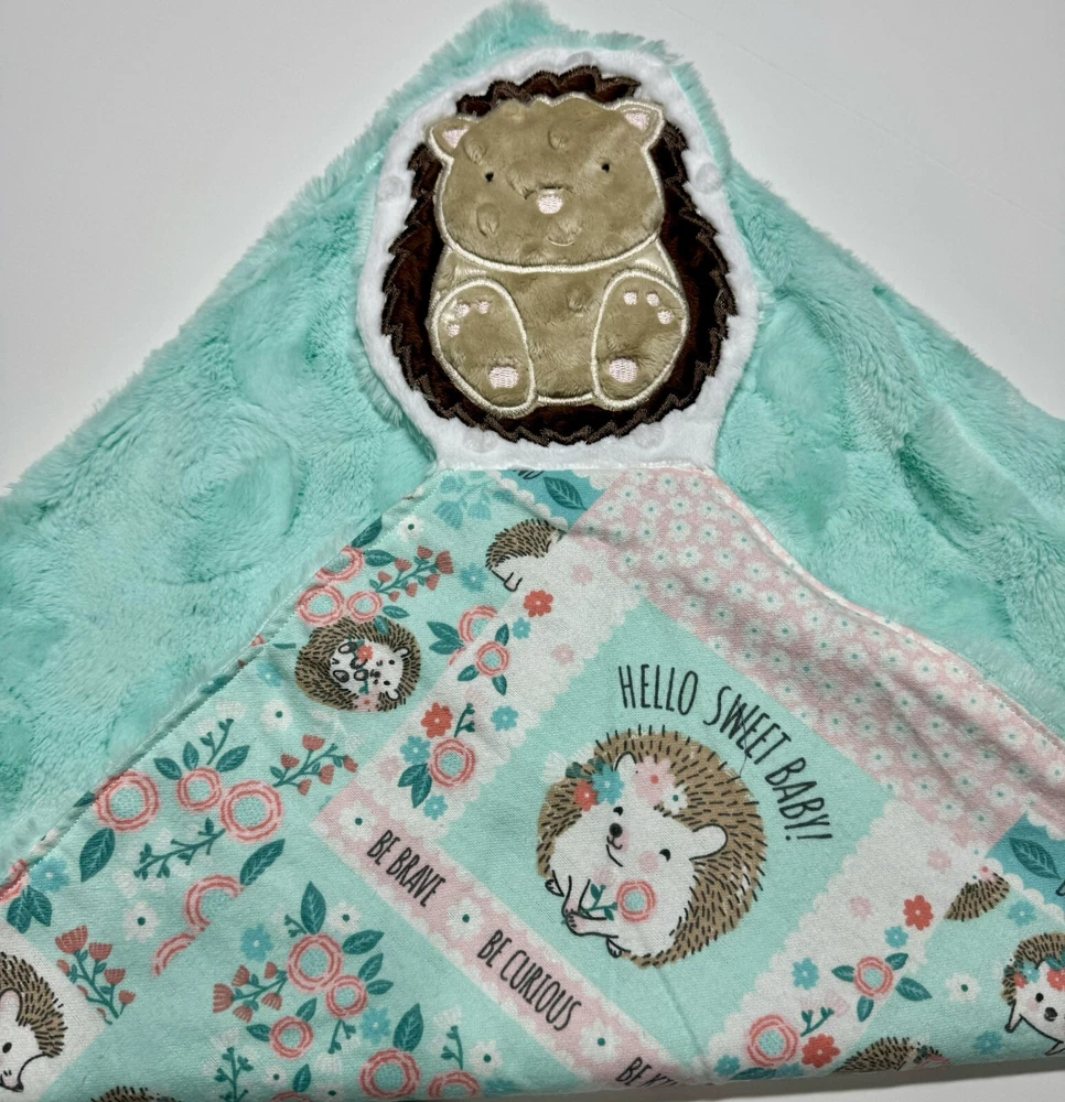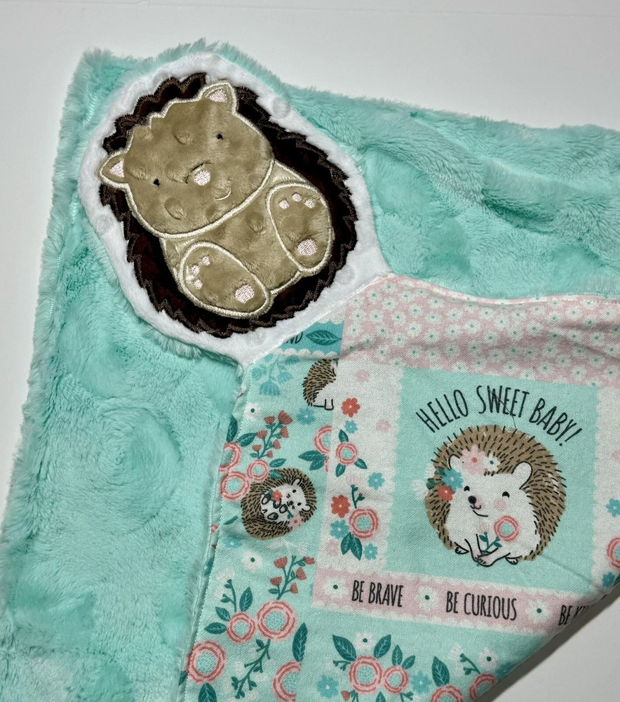 Hedgehog Baby Lovey Security Blanket Appliquéd Flannel Minky