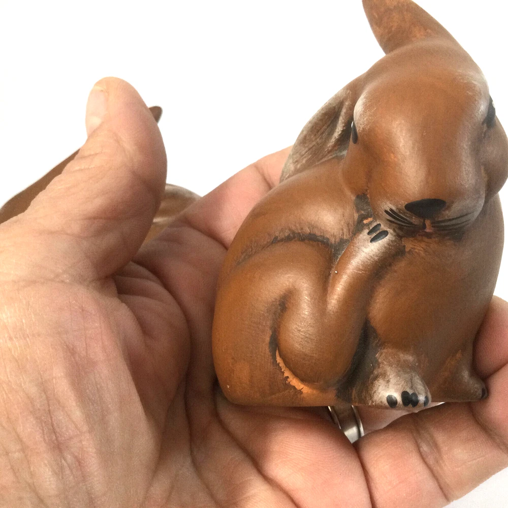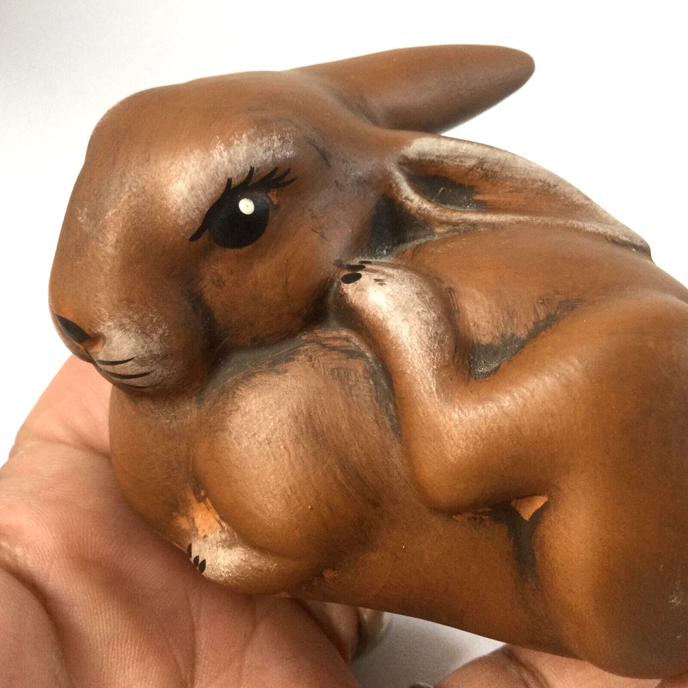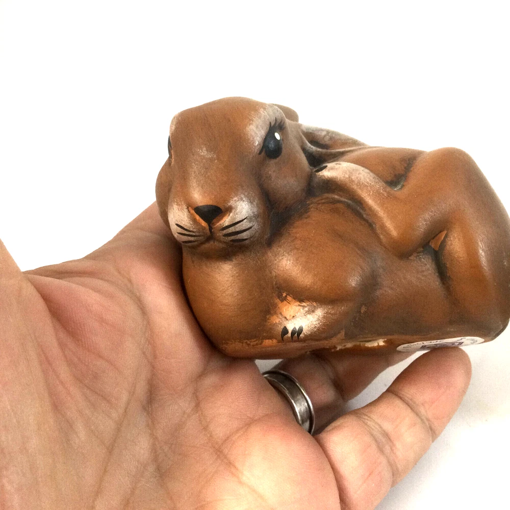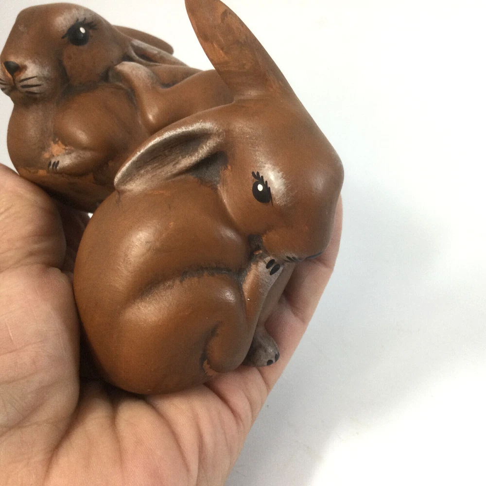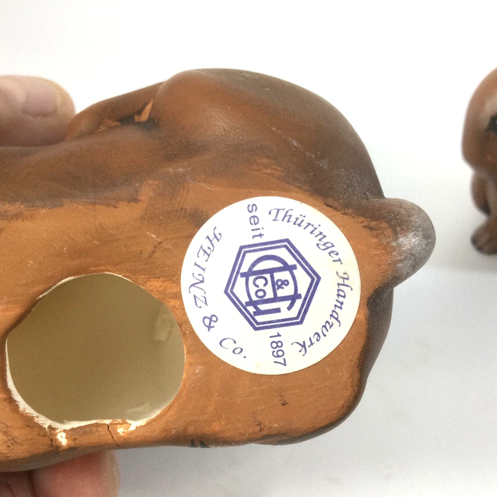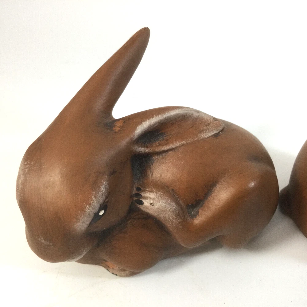 Heinz & Co Thuringer Handwerk Ceramic Brown Bunnies Rabbits Figurines Set of 2. One is 3.5" W x 3" H and second one is 4" H x 2" W. Very good condition, no chips , no cracks