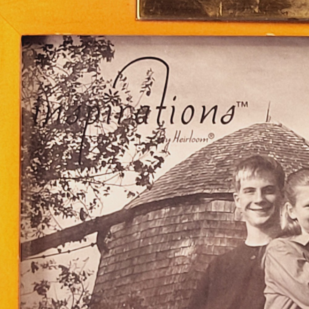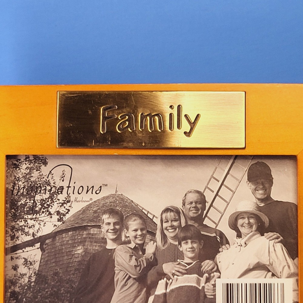 Inspirations by Heirloom picture frame Wood with brass-look accents - "Family" Fits horizontal photo size 4" x 6" Frame size 8.25" x 6.5" Easel back Thank You!