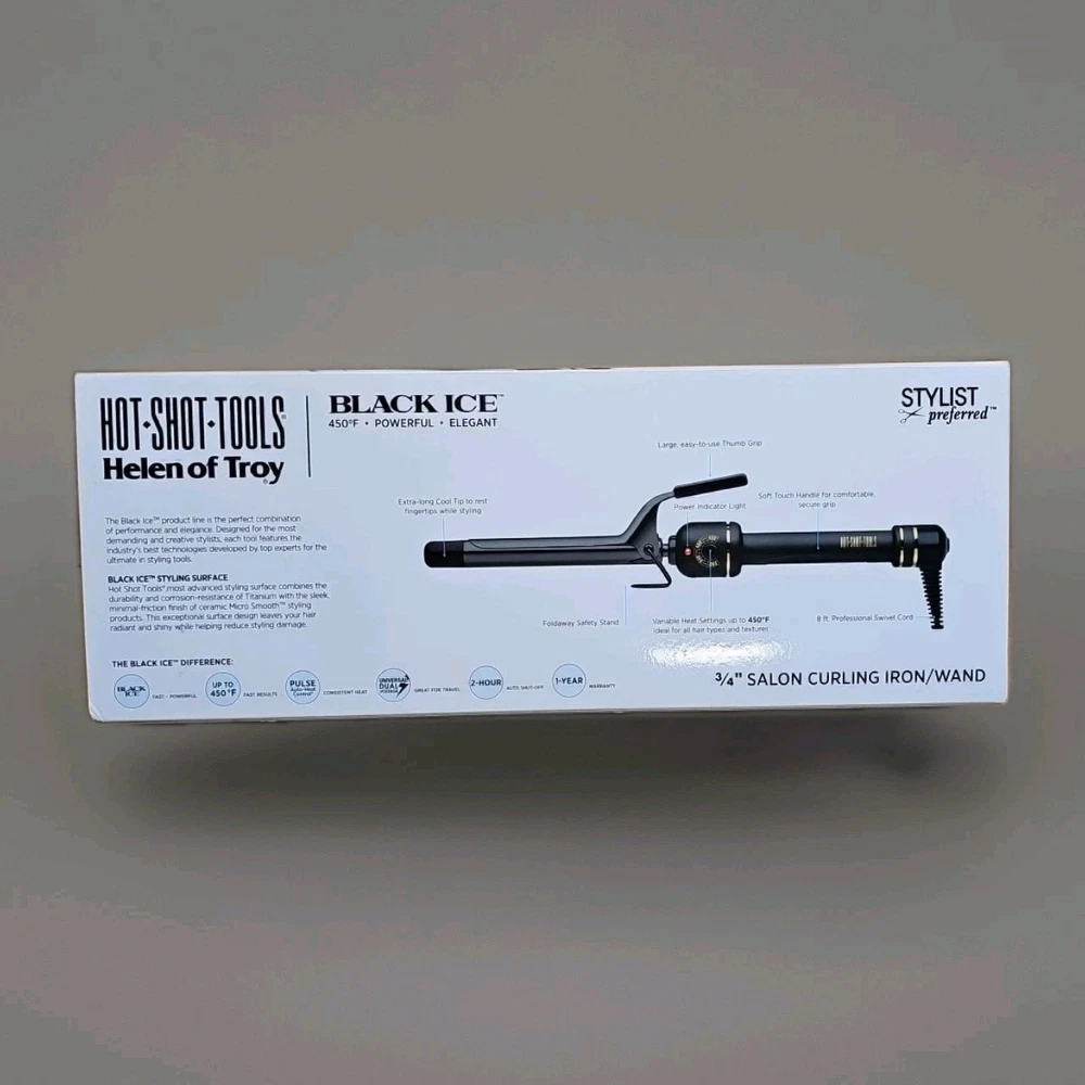 New in Box sealed in original plastic Hot Shot Tools Helen of Troy 3/4" Salon Curling Iron Black Ice Instant Heat 450*.