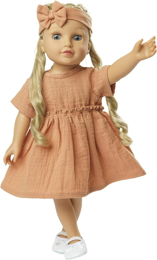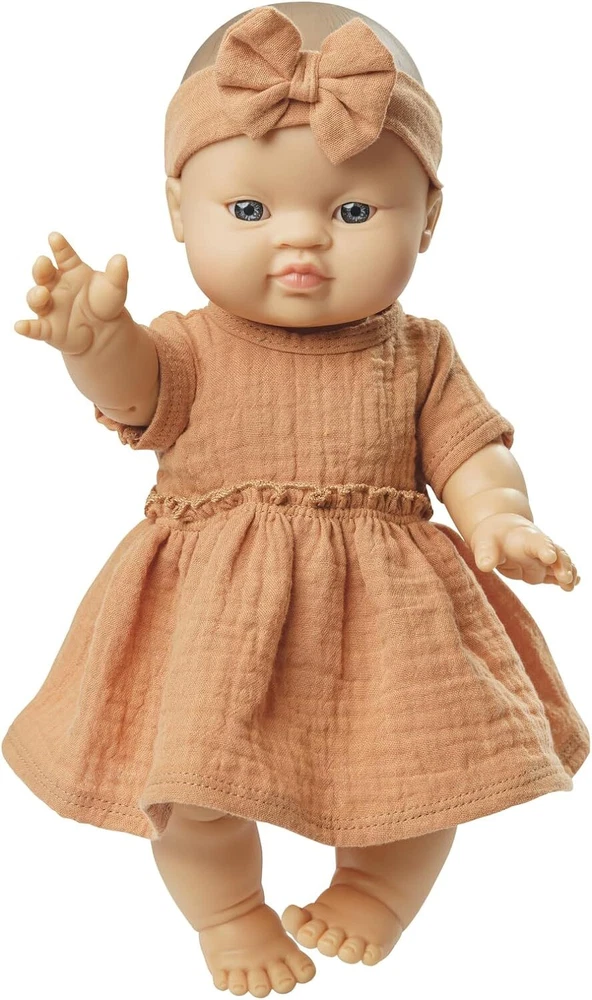 Further Details Title: Heless 1425 1425 100% Organic Cotton Clothes Set with Dress and Hair Band for Dolls and Soft Toys 28 to 35 cm, Brown Condition: New Type: Clothing MPN: ‎1425 Number of Items: 1 stuk Description: PRODUCT DESCRIPTION This adorable Heless doll dress made of 100% organic cotton gives you endless and safe play with your doll. The little ruffled dress and matching headband in trendy caramel brown are not only adorable, they also provide a sense of well-being. The soft muslin from organic farming and slightly gathered at the waist draws a beautiful silhouette to your doll. The matching headband with bow is elastic, so that it fits perfectly on the head of each doll. A doll dress with an affectionate design that impresses with its soft colour, high quality and simple elegance. The Velcro closure on the back allows the doll dress to be put on and take off with childish ease. The dress is suitable for most 11-14 inch dolls available on the market. It is also available in another version for dolls from 35 to 45 cm (art. No. 2425). The item comes on a wooden hanger. Playing with dolls, stuffed animals and their accessories can simulate realistic situations in everyday life, train the child's social behavior and stimulate motor skills. This is how doll fashion becomes a pleasure. Heless quality toys stand for love of design and support the development of your child. SAFETY WARNING No Warnings Brand: Heless Colour: ‎Brown Material: ‎Hand Wash Only Release Date: 04/15/2024 Item Length: 250mm Item Width: 270mm Item Height: 10mm Weight GMS: 60.00 As a traditional company, Heless pays great attention to high quality and, of course, compliance with all legal safety requirements. 2-piece doll outfit made of 100% organic cotton in caramel colour, consisting of a ruffle dress and a headband with bow; doll accessories come on a practical wooden hanger Thanks to the Velcro fastener on the back, the dress is very easy to put on and take off, which gives children a lot of fun when playing. Heless toys are developed with a love of design and detail. All products promote creative role play and stimulate playful imagination. Playing with dolls and stuffed animals can develop children's empathy ability and fine motor skills. The set is suitable for baby dolls, soft dolls and fabric dolls as well as stuffed animals from 28 to 35 cm. Missing Information? Please contact us if any details are missing and where possible we will add the information to our listing.
