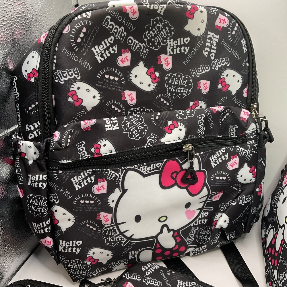 This 4-piece set includes a Hello Kitty outdoor backpack, pencil case, shoulder school bag, and wallet, all featuring the popular Hello Kitty character in a colorful animal print design. Made of durable polyester material, these items are perfect for school, with a zip closure for easy access. The backpack and shoulder school bag are designed for both boys and girls, making it a versatile and fun choice for any young Hello Kitty fan.