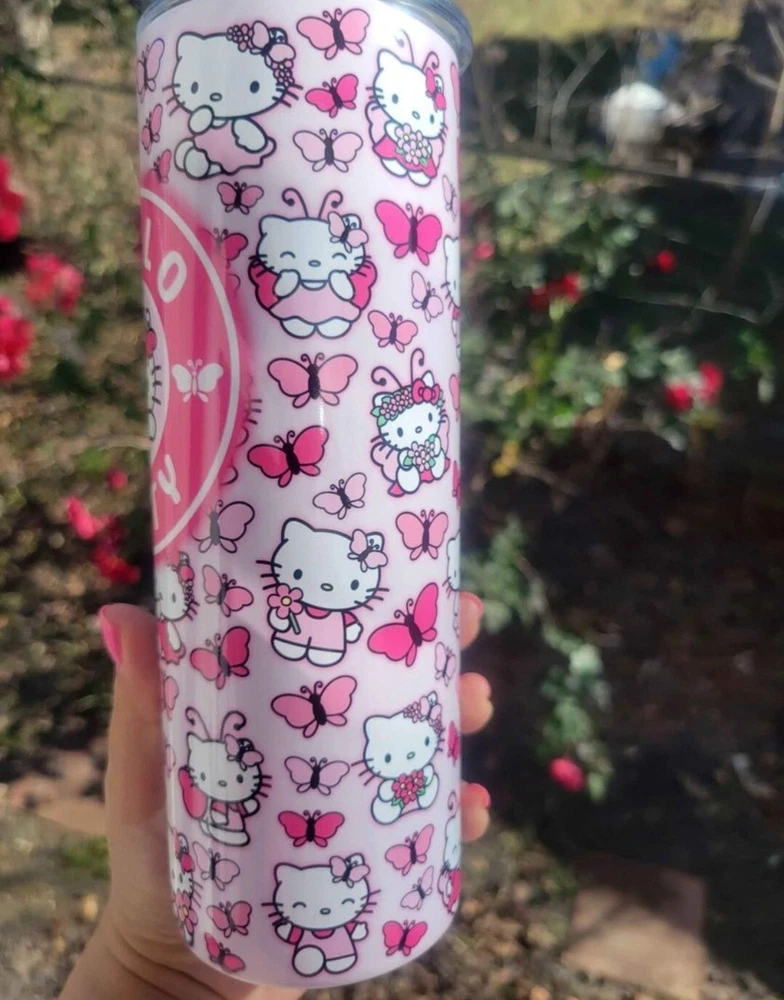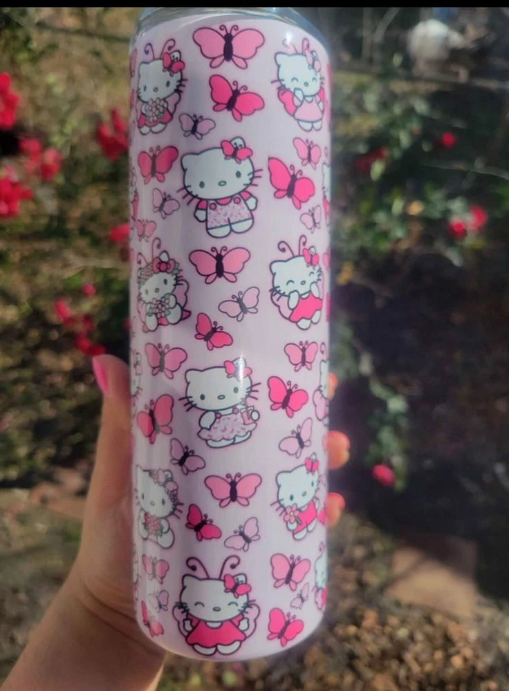 Hello Kitty & Butterlies 20 oz tumbler. Comes with lid and straw.
