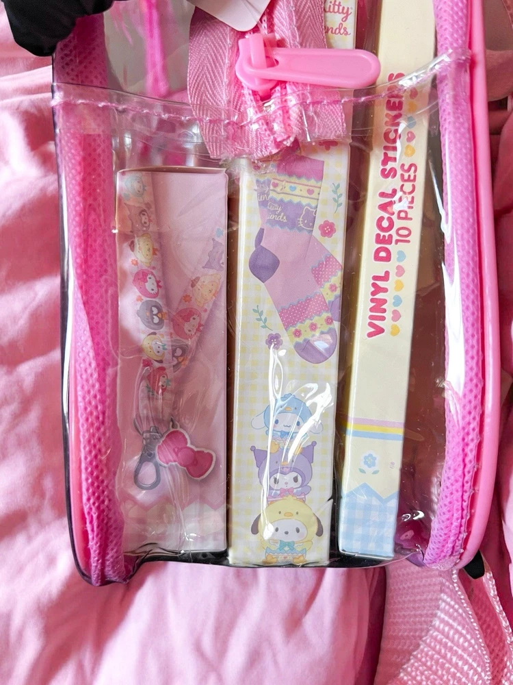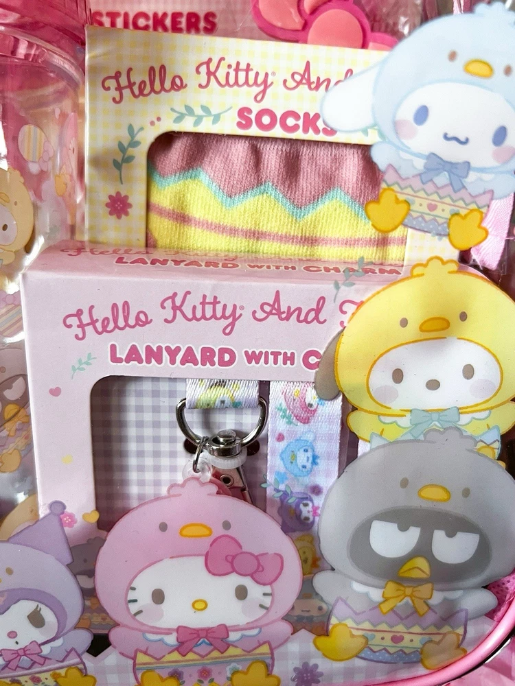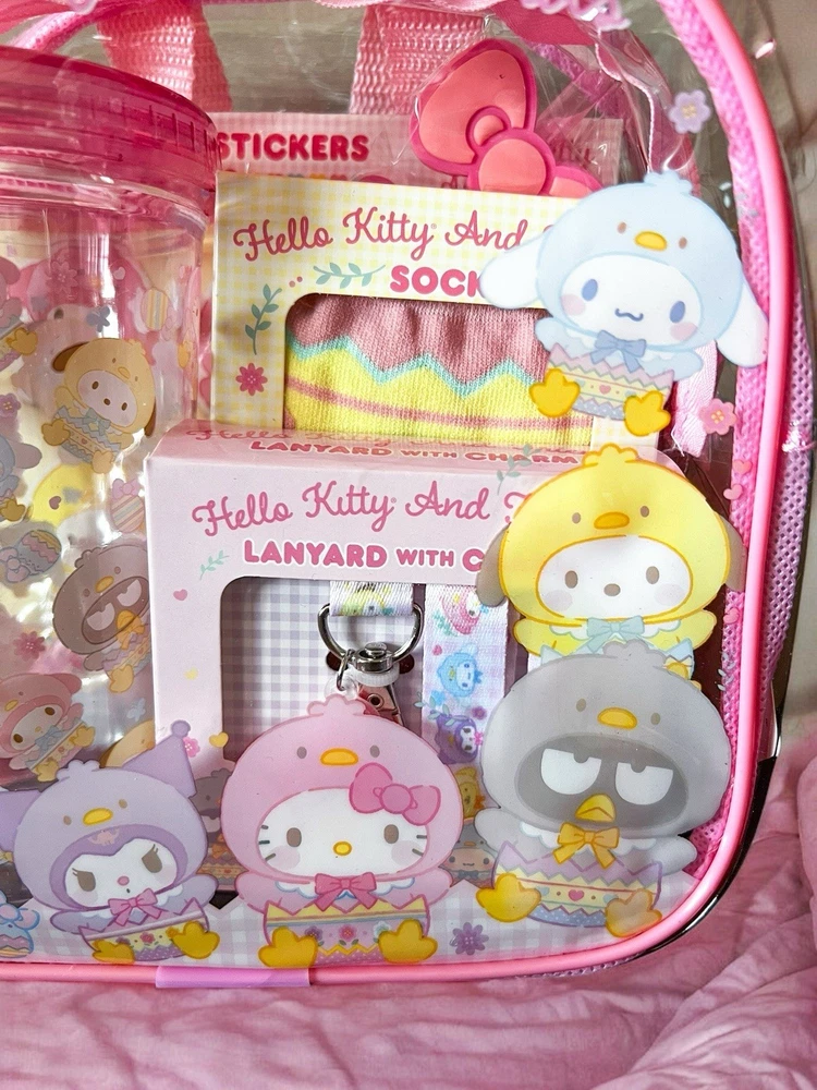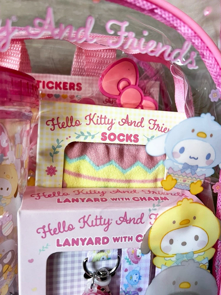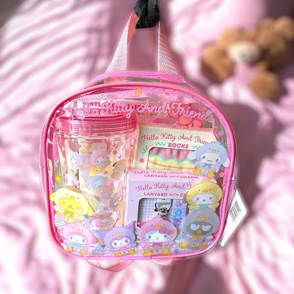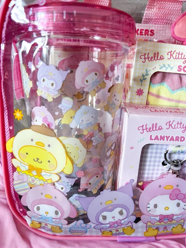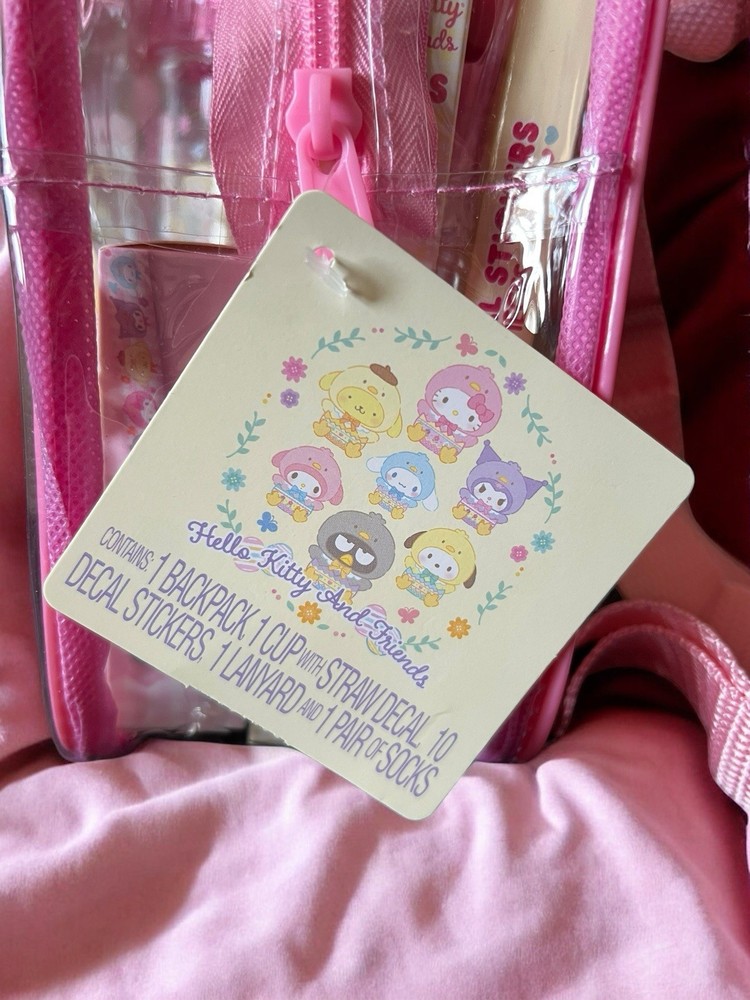 The Hello Kitty & Friends Easter Mini Pink Backpack Gift Set is a cute and colorful accessory for kids. This brand new tote features a floral pattern and Hello Kitty character design, making it perfect for Easter celebrations. The mini backpack is made of polyester and plastic materials, with adjustable straps for comfortable wear. Ideal for travel, activewear, parties, or casual outings, this stylish backpack is a fun and practical gift for young fans of Hello Kitty. Includes Hello Kitty, Badtz-Maru, Kuromi, My Melody, Pompompurin, cinnamoroll, and pochacco. Brand New Pet and smoke free home Fast shipping