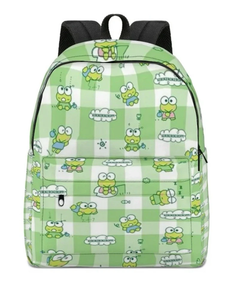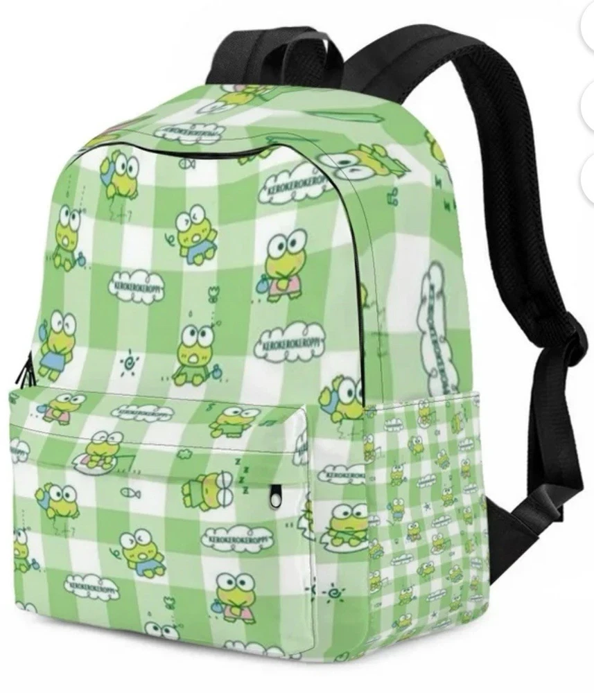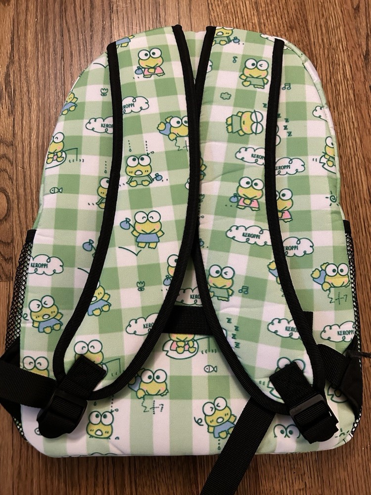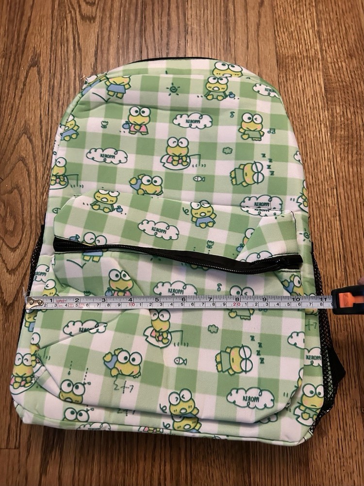 Hello Kitty & Friends Keroppi 16" Large school Backpack Book Travel Bag Gingham