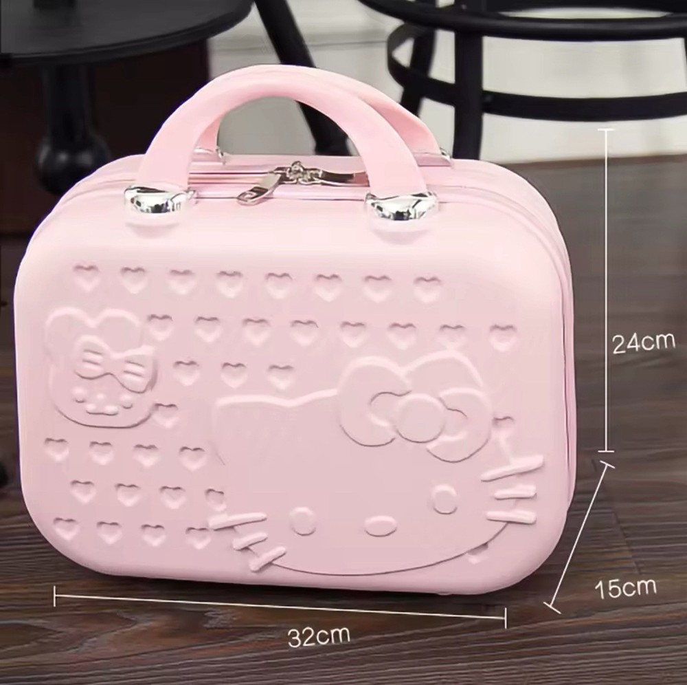 This adorable Hello Kitty carry-on is perfect for any young girl's travel essentials. Made of durable ABS plastic, it features a charming character/cartoon pattern in pink. Measuring 14 inches, it is the perfect size for carrying on any necessary items. This carry-on is not only cute but also practical, with features that make it easy to transport your belongings. Made in China, it is a great addition to any travel collection.
