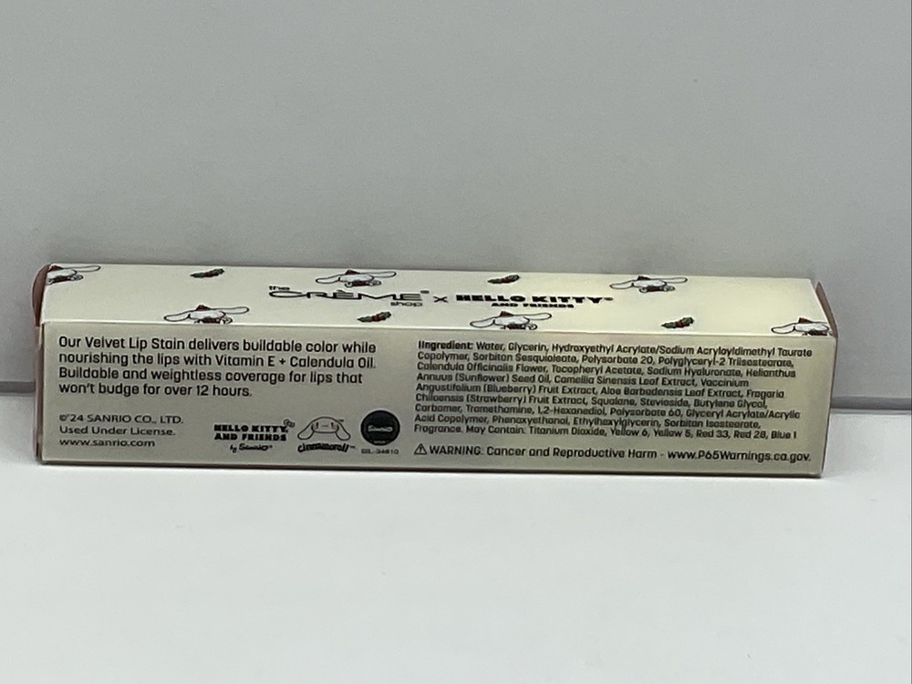 The Crème Shop x Hello Kitty & Friends Velvet Lip Stain - Sweet Delight. Condition is New. Shipped with USPS Ground Advantage.