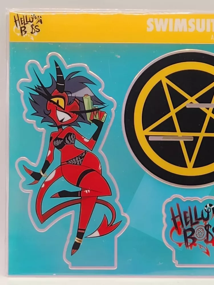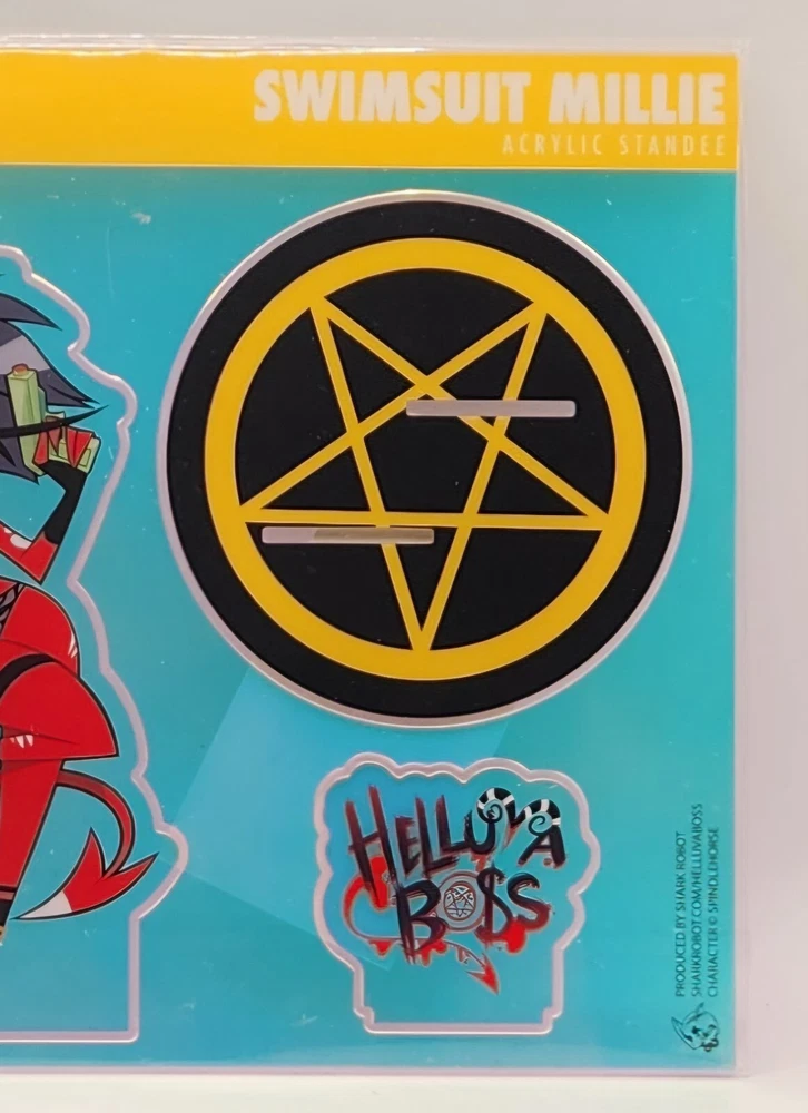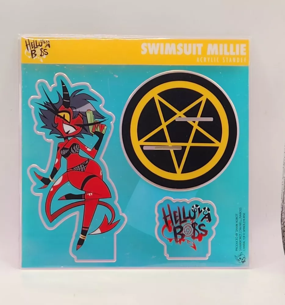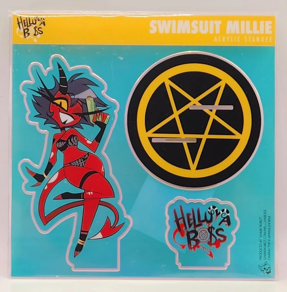 Helluva Boss Summer 2024 Swimsuit Millie Rainbow Acrylic Standee from Sharkrobot. Item sold as is. New, unopened. Standee has a protective film that must be removed before displaying. Comes from a smoke-free home. Not pet free. Please see images for item specifics.