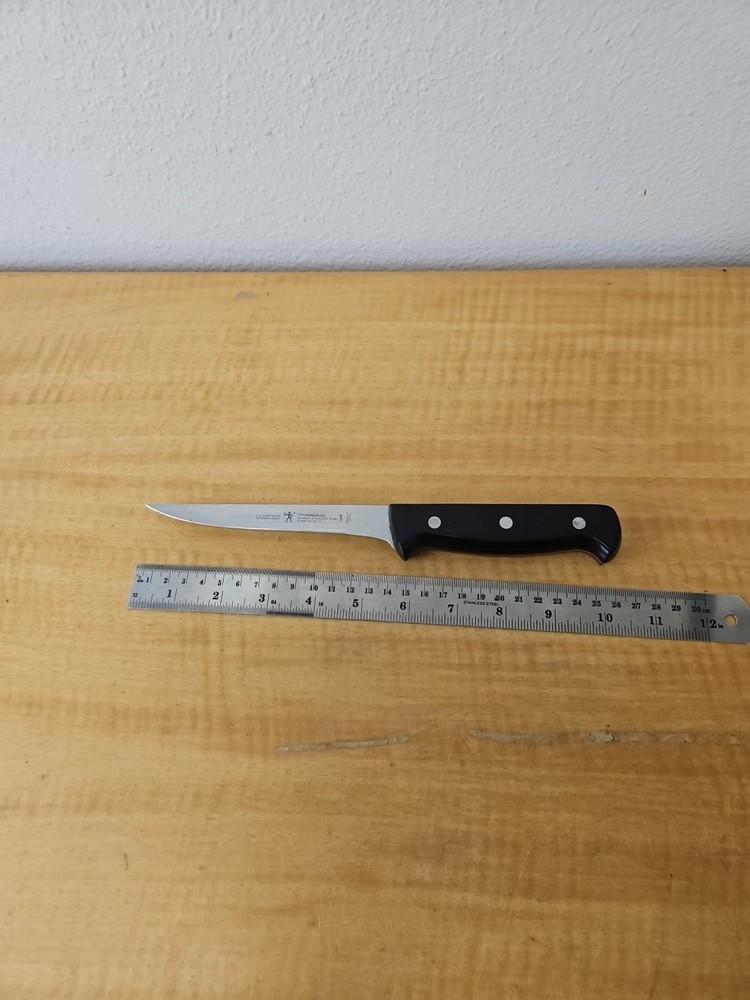 Blade Length: 5 1/2 Number of Items in Set: 1 Material: Stainless Steel Type: Carving & Slicing Knives Color: Black Brand: J.A. HENCKELS INTERNATIONAL Personalize: No