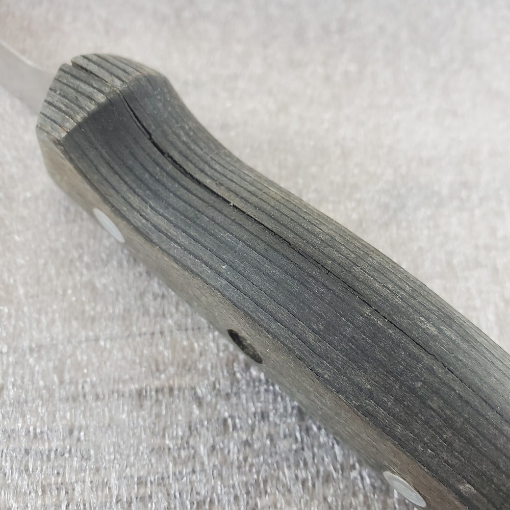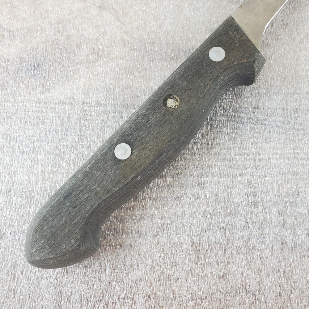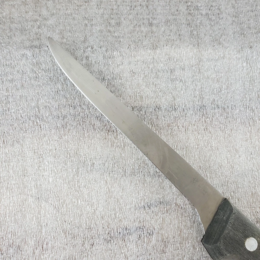 Zwillingswerk JA Henckels 5.25" Blade 11" Knife Solingen Germany No Stain DAMAGE Wood is starting to separate from knife at the beginning of the tang where the handle meets the blade. Middle Rivet on back has lost its top. I've tried my best to show condition in the photos. Please view the photos carefully for condition details. Don't forget to check out the other items in my shop. I'm getting in new fun things all the time. Thank you for looking! Have a great day!