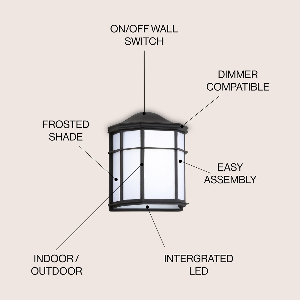 Simple lines and a black metal finish make this modern version of a front-door lantern stand out. Frosted acrylic panels soften the light. This is the perfect lantern for an entry, garage, or courtyard gate.Features:This lantern's small size and simple design are just right for modern or traditional homes Use a pair on either side of a front door, or a single lantern at the back door As this fixture must be hardwired, we recommend a professional electrician manage installationBuilt-in LED lights, so no bulbs are required ETL ListedColor: Black/WhiteBody Material: Metal/AcrylicIncludes: One (1) lampAssembly RequiredDimensions:Lamp: 9.75 inches high x 7.75 inches wide x 4.25 inches deepAbout us:You see a lamp.We see a decorative work of art.A perfectly curved shade casts a dramatic shadow on Free Shipping Over $49.99* Details Henry 7.75" Outdoor Metal Integrated Sconce, Black/White by JONATHAN Y Product Description: Simple lines and a black metal finish make this modern version of a front-door lantern stand out. Frosted acrylic panels soften the light. This is the perfect lantern for an entry, garage, or courtyard gate. Features: This lantern's small size and simple design are just right for modern or traditional homes Use a pair on either side of a front door, or a single lantern at the back door As this fixture must be hardwired, we recommend a professional electrician manage installation Built-in LED lights, so no bulbs are required ETL Listed ColorBlack/White Body MaterialMetal/Acrylic IncludesOne (1) lamp Assembly Required Dimensions: Lamp9.75 inches high x 7.75 inches wide x 4.25 inches deep About us: You see a lamp. We see a decorative work of art. A perfectly curved shade casts a dramatic shadow on a floor. Compatible with LED lightbulbs as easy on the environment as they are on the eyes. The JONATHAN Y Lighting collection considers every detail from impeccably sourced materials to designer styling. And our prices are so attractive, we've transformed a functional necessity into a fashion accessory. JONATHAN Y Lighting - a fashion revolution in home decor.