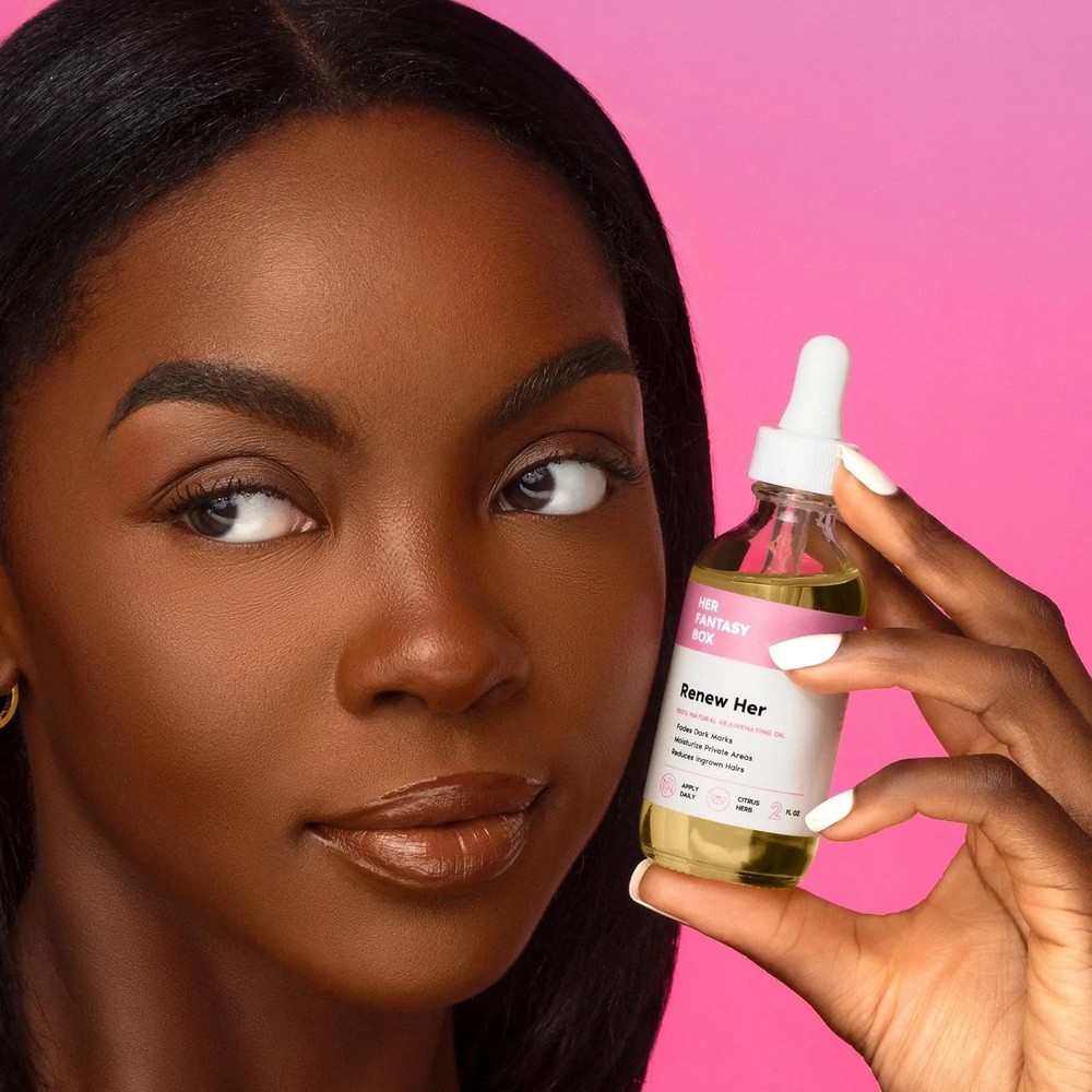 ✨ pH-Balancing and Skin Tone Improvement: Bid farewell to dark marks and welcome a revitalized look with balanced pH levels, boosting confidence in your intimate area. ✨ Soothing and Moisturizing Formula: Experience relief from irritation, swelling, and dryness. Reduce discomfort and provide essential moisture for intimate comfort. ✨ Helps Prevent Ingrown Hairs: Enjoy smoother skin and reduce the occurrence of ingrown hairs, promoting a more comfortable experience. ✨ Versatile Application: Enjoy its benefits on your entire body. Nourish dry areas and revel in the rejuvenating effects of this natural oil. ✨ 100% Natural Ingredients: We believe in the power of nature. That's why Renew Her Oil is crafted with the highest grade of 100% natural ingredients. It's free of harsh chemicals, ensuring it's safe for all skin types. Embrace a skincare solution that's as gentle as it is effective. ✨ Convenient and Easy to Use: Simply apply after showering or when feeling irritated, sore, or dry. Let the refreshing scent and rejuvenating effects uplift your mood and intimate well-being.