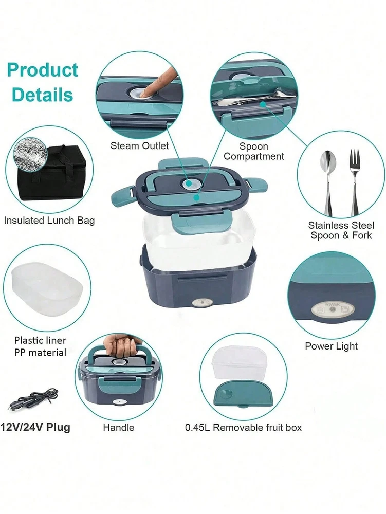 $ 18.34Portable Electric Heated Lunch Box for Adults with Removable 304 Stainless Steel Container