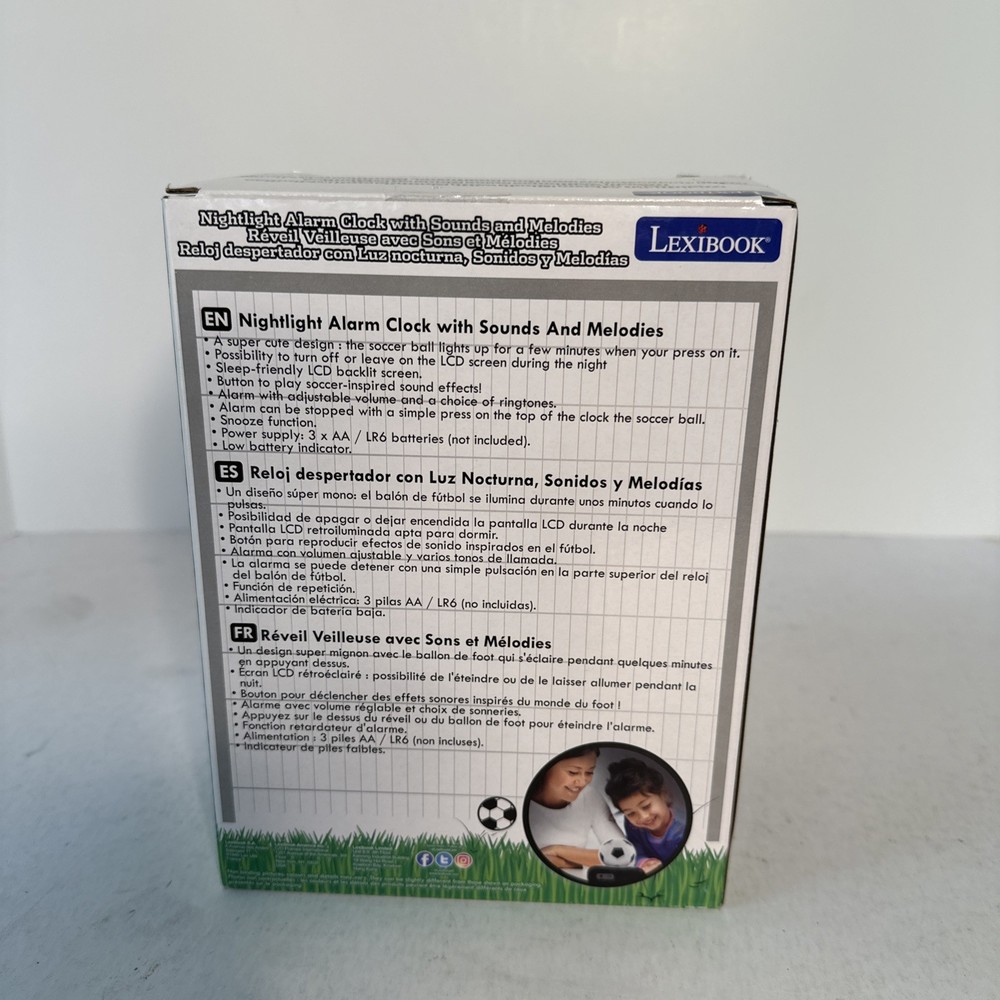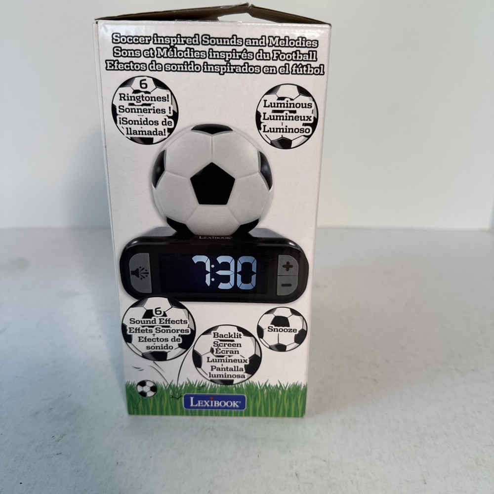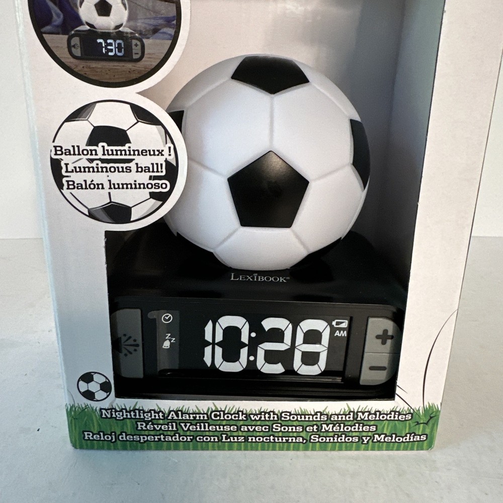 Wake up to a kick-start to your day with the Ball Digital Alarm Clock, featuring a lively soccer theme that's sure to energize any bedroom. This charming clock combines functionality with a flair for sports, boasting a luminous display that illuminates the time even in the darkest of rooms. The unisex design makes it a versatile addition to any home decor. The RL800FO model, with dimensions of 13.5 x 9.2 x 18.5 inches, is both compact and eye-catching, easily fitting on a nightstand or desk. It's equipped with a convenient night light and snooze feature, making it a practical choice for those who value both style and comfort in their daily routine. Requires three AA batteries to operate.