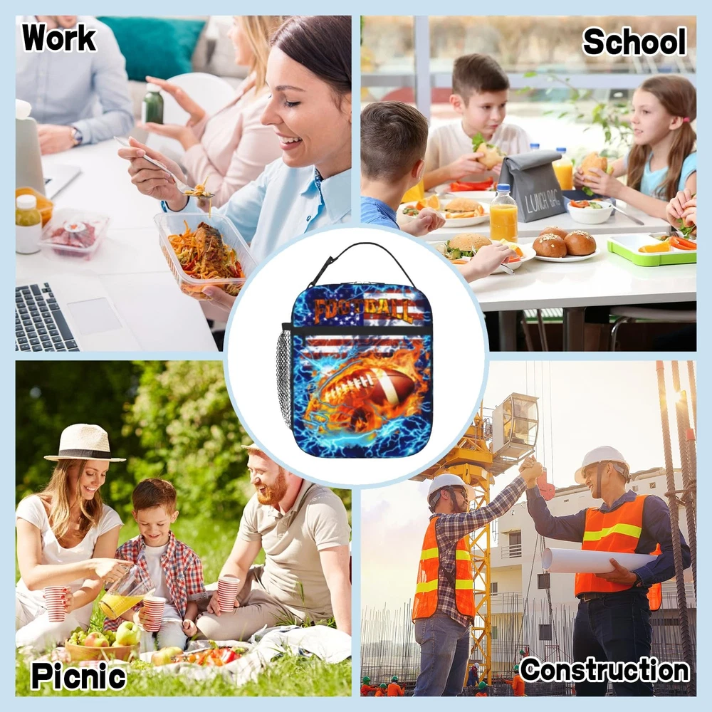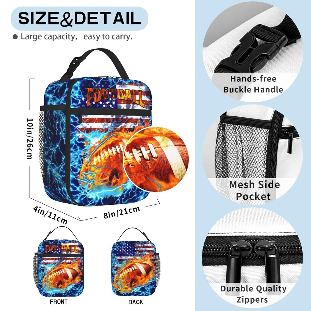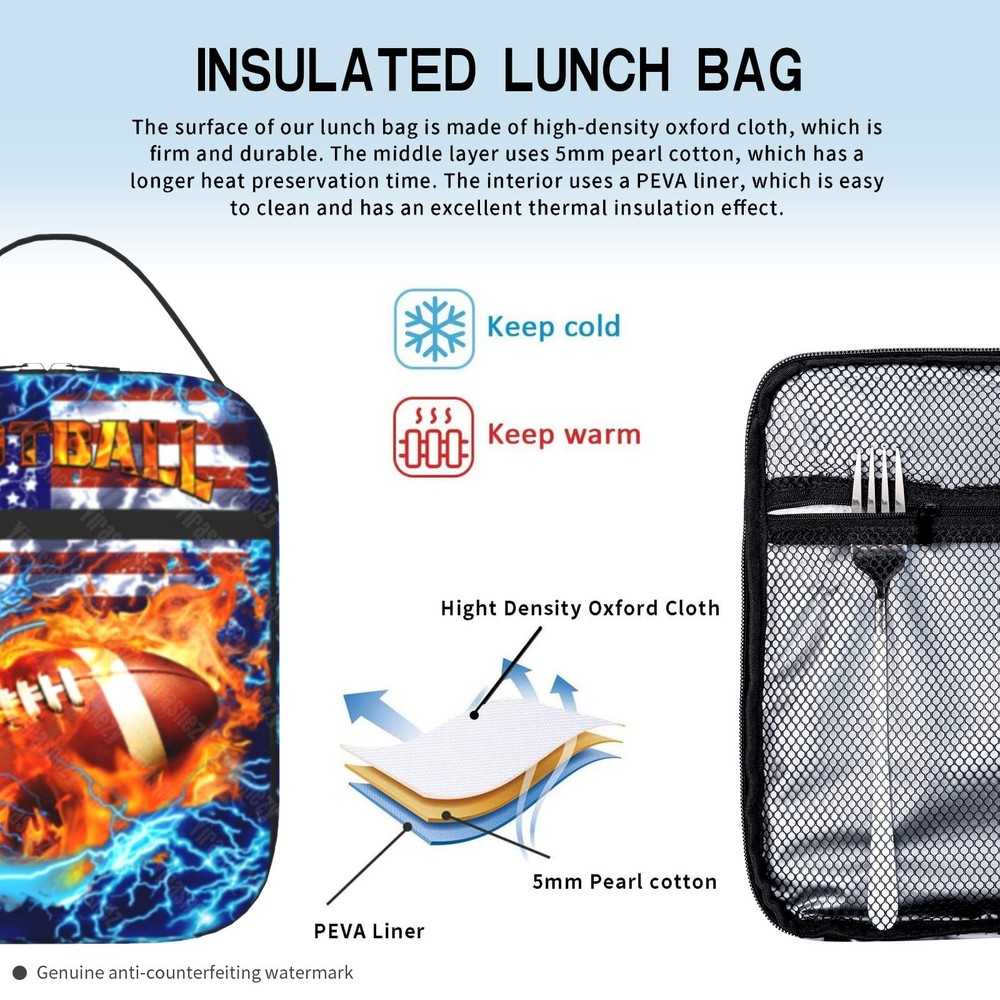This lunch bag is a total game-changer! My son absolutely loves the cool lightning football design, and I'm impressed by how roomy it is inside while still being compact. Perfect for school lunches and sports practice - it's become his favorite accessory!