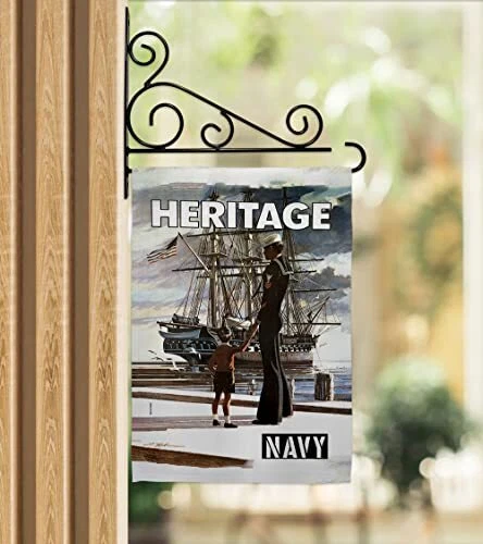 Heritage US Garden Flag Set Wall Holder Armed Forces Navy USN Seabee United S...