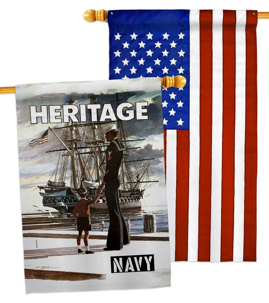 Heritage US House Flag Pack Armed Forces Navy USN Seabee United State America...