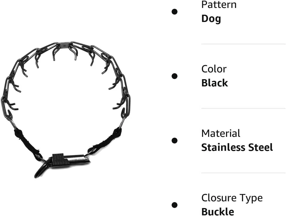This training collar is a game-changer—superior quality, comfortable for my dog, and extremely effective. The prongs distribute pressure evenly, making corrections gentle yet firm. The quick-release feature is a huge plus, and the black stainless steel looks sleek while resisting rust. My dog responds so much better compared to a regular choke chain. Highly recommend for anyone serious about training!