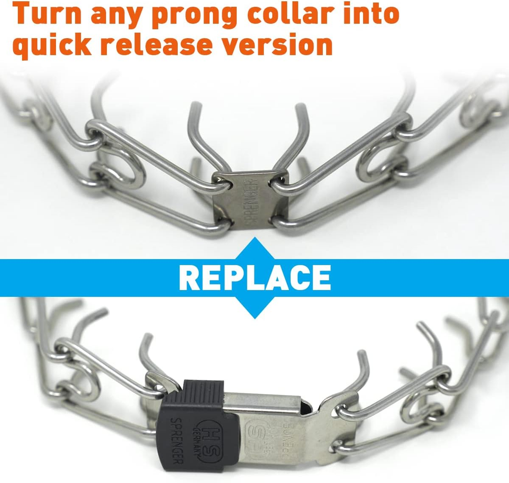 Store New Arrivals Add to Favorite View Feedback Herm Sprenger Cliclock Fastener Stainless Steel Buckle for Prong Dog Training Collar & Quick Release with Easy Buckle for Small Medium Large Dogs (2.25Mm) Description Item model number 60155-322-55 Age Range Description All life stages Number of Items 1 Brand Name Herm Sprenger Closure Type Snap Color silver,black Pattern Dog Brand Herm Sprenger Material Stainless Steel Package Dimensions 6.54 x 4.8 x 0.75 inches; 1.45 ounces Item Weight 1.44 ounces Manufacturer SPRENGER Target Audience Keyword dogs Size 2.25mm Is Discontinued By Manufacturer No Specific Uses for Product Dog Training, Behavior Item Package Dimensions L x W x H 6.54 x 4.8 x 0.75 inches Breed Recommendation Medium Breeds Durable Buckle: This patented Herm Sprenger ClicLock buckle is made of high-quality stainless steel. This German precision buckle makes a standard prong collar easier to add and remove. Easy to Use: The patented Herm Sprenger ClicLock simple latching mechanism replaces the standard collar center plate and ensures that adding and removing the prong training collar is quick and easy for any hand dexterity. Safe and Effective: When closed, the ClicLock makes a clearly audible "click" indicating secure closure. High quality stainless steel materials are rust-proof and German manufacturing ensure it will last for years. Variety Sizes & Rustproof: This center plate replacement works with all Herm Sprenger prong collars. Designed in 3 sizes: 2.25mm, 3/3.2mm, and 4mm to fit your prong collar. German Quality: Made in Germany by the world's foremost manufacturer of top quality dog products, you can expect the best from Herm Sprenger. This ClicLock buckle is stamped with the Sprenger seal to authenticate its quality. This Herm Sprenger revolutionary ClicLock buckle is made of stainless steel. This buckle makes the collar easy to put on and take off thanks to the simple opening and closing mechanism. It even provides an audible click to ensure proper closure. Herm Sprenger’s revolutionary buckle design substitutes the typical metal center plate with the ClicLock, allowing you to fit the collar around your dog’s neck and fasten, rather than pull the collar over their head. This ensures the fit is not loose and provides adequate correction without risk of falling off. Durable Stainless Steel Material Universal Prong Collar Compatibility Easy to Install and Remove Collar Improves Prong Collar Fit and Performance Safe and Secure The ClicLock buckle is used to improve the performance of your Herm Sprenger dog training prong collar The high-strength quick release buckle, made of quality stainless steel material makes your existing prong collar much easier to put it on and take off while improving the fit and performance as well. These buckles will look wonderful with Herm Sprenger prong collars. They make the already great Herm Sprenger prong collar even faster and simpler to use while preserving complete collar capability without the need for extra hardware. ABOUT US We offer the best prices around on high quality products. Our E-store includes media such as books, movies, music and games while offering electronics, toys, sporting apparel, clothing, tools, general home, garden items and more. SHIPPING We are always working hard to ensure your package arrives as soon as possible. Please understand that some factors like weather, high postal traffic, and the performance of shipping companies are outside of our control. We offer free shipping to the lower 48 states and ship within 2 business days of payment, usually sooner. We do not accept P.O. Boxes. Please provide a physical address. RETURNS We offer a 30-Day Return Policy on items which you are not completely satisfied with. You have the option for a full-refund or an exchange of the item. No returns are available on items shipped outside of the USA. PAYMENT We accept PayPal. CONTACT US This page content is yet to come Please ad us to your favorite seller and visit again later Thank You