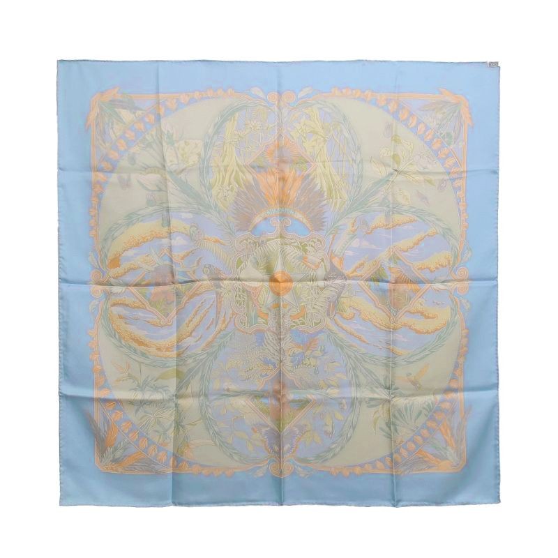 Hermes Carres 90 Amazonia Silk Scarf Light Blue Large Stole Returns Accepted