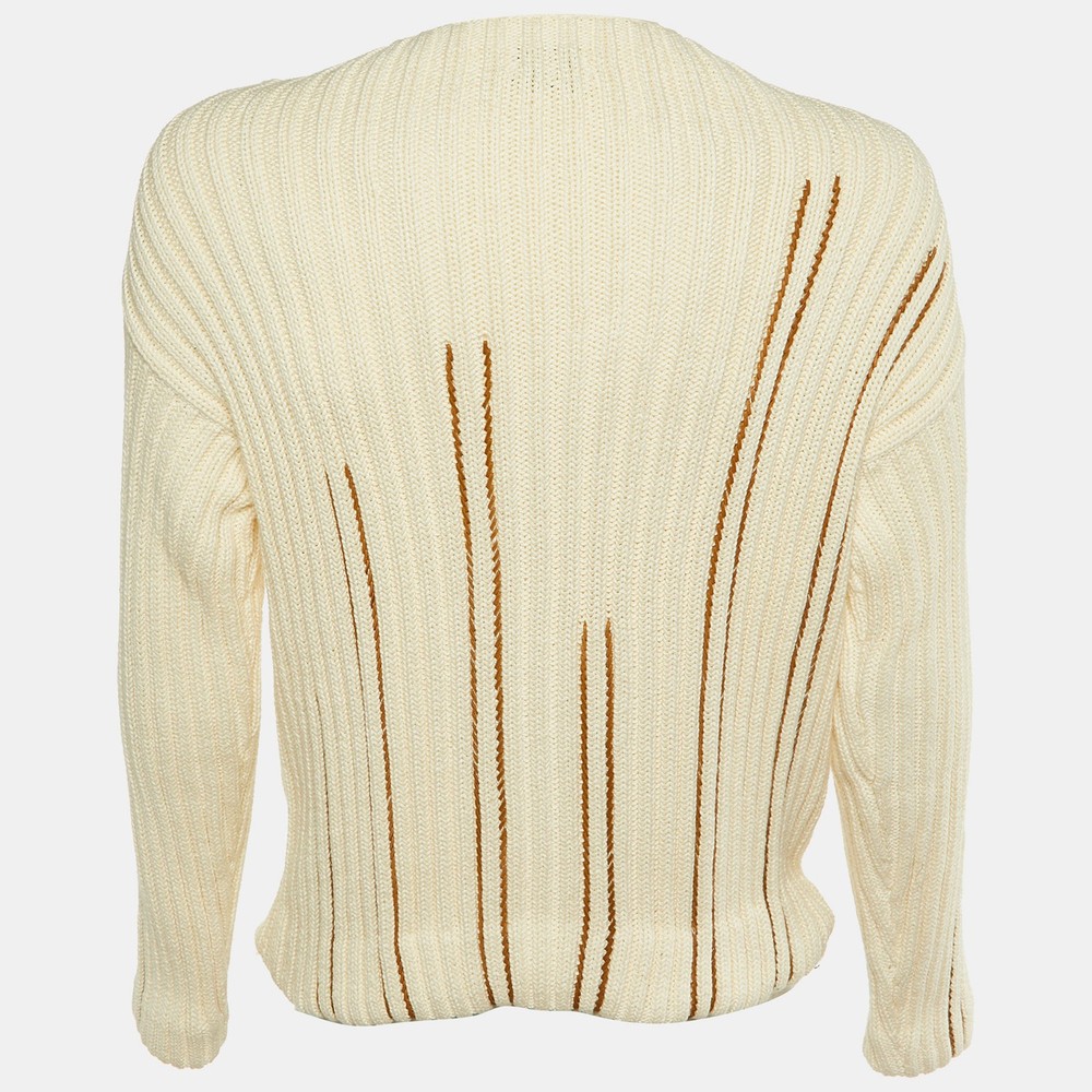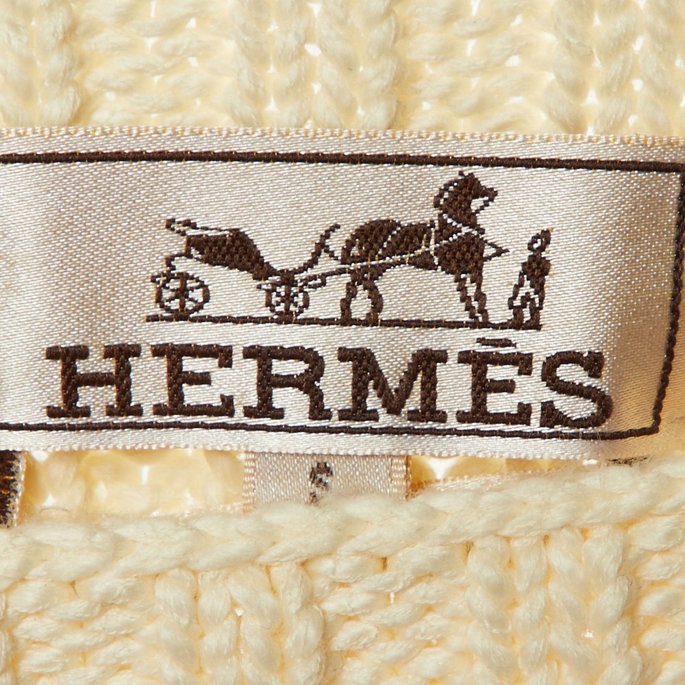 Effortlessly sophisticated, this Hermès pullover is crafted from soft cream cotton in an intricate cable knit pattern that nods to timeless craftsmanship. Elevated by braided leather detailing, it adds an unexpected touch of artisanal luxury.Certified by The Luxury Closet - This item has gone through a detailed authentication process overseen by our experts. We offer a lifetime guarantee of authenticity on all our items. Import duties, taxes and charges are not included in the item price. These charges are the buyers responsibility. Please check with your country’s customs office to determine what these additional cost will be prior to buying. Our eBay Store About Us Contact Us Add to Favorite Sellers Hermes Cream Cotton Cable Knit Leather Braided Pull Over S $540.1 Effortlessly sophisticated, this Hermès pullover is crafted from soft cream cotton in an intricate cable knit pattern that nods to timeless craftsmanship. Elevated by braided leather detailing, it adds an unexpected touch of artisanal luxury. Product Details Brand Color Cream Dimensions Material Cotton, Leather Size S Outsole Width Outsole Length Heel Height Includes Certified by The Luxury Closet This item has gone through a detailed authentication process overseen by our experts. We offer a lifetime guarantee of authenticity on all our items. How We Check The in-house team of experts at The Luxury Closet is highly trained to verify the authenticity and the condition of the luxury products. They ensure that only 100% authentic items are put on sale.The evaluation process is unique with its own mix of assessment criteria and differs according to the category. Each item is evaluated based on the following combination of hallmarks, hardware, stitching, symmetry, material, craftsmanship, stamping, codes, hologram stickers, and packaging. Our authenticators also check if the items have been modified or amended (e.g., aftermarket diamonds, replaced batteries, repaired bags, etc.) International Buyers Import duties, taxes and charges are not included in the item price. These charges are the buyers responsibility. Please check with your country’s customs office to determine what these additional cost will be prior to buying.