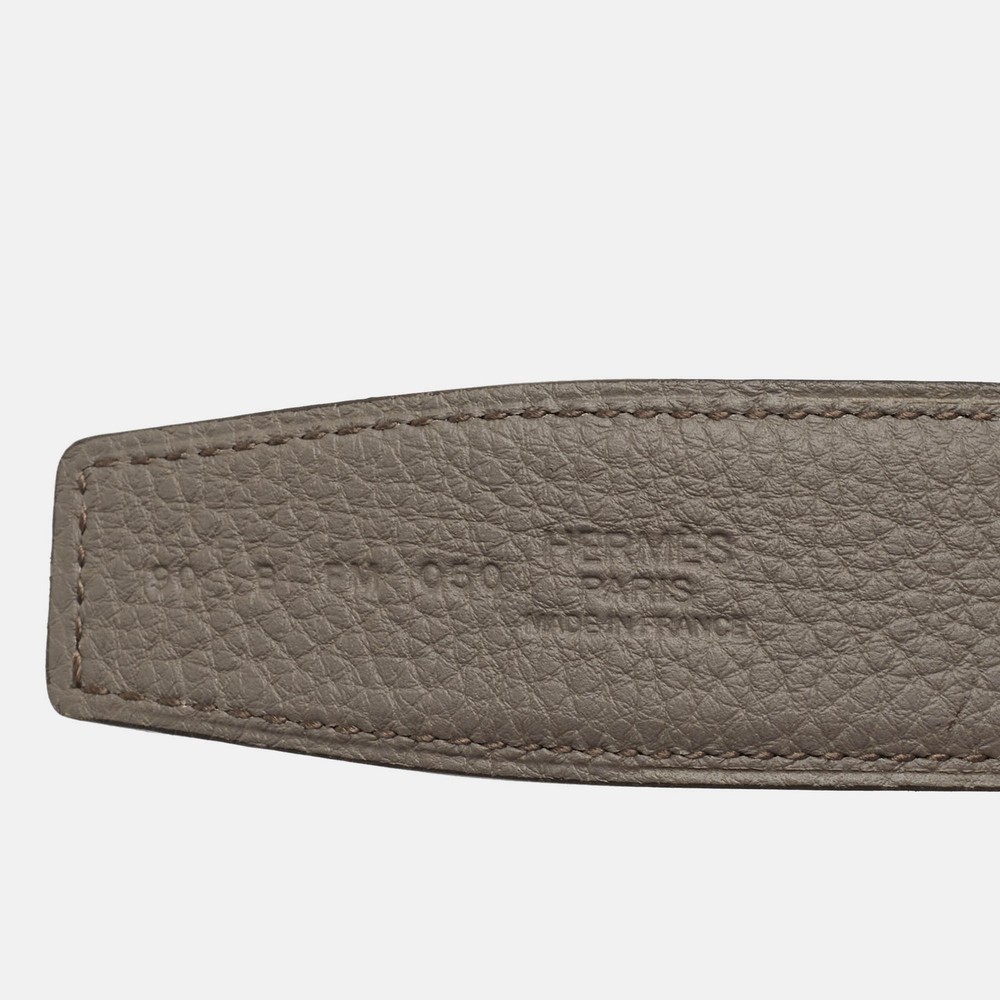 A versatile wardrobe essential, this Hermès belt strap features smooth Box leather on one side and grained Togo leather on the other, in a sophisticated Gris Meyer and Noir combination. Designed for interchangeable buckles, it offers two distinct styling options in one.Certified by The Luxury Closet - This item has gone through a detailed authentication process overseen by our experts. We offer a lifetime guarantee of authenticity on all our items. Import duties, taxes and charges are not included in the item price. These charges are the buyers responsibility. Please check with your country’s customs office to determine what these additional cost will be prior to buying. Our eBay Store About Us Contact Us Add to Favorite Sellers Hermes Gris Meyer/Noir Togo and Box Leather Reversible Belt Strap 90 CM $559.9 A versatile wardrobe essential, this Hermès belt strap features smooth Box leather on one side and grained Togo leather on the other, in a sophisticated Gris Meyer and Noir combination. Designed for interchangeable buckles, it offers two distinct styling options in one. Product Details Brand Color Grey Dimensions Width: 3 cm, Length: 90 cm Material Leather Size 90 CM Outsole Width Outsole Length Heel Height Includes Original Dustbag, Original Box Certified by The Luxury Closet This item has gone through a detailed authentication process overseen by our experts. We offer a lifetime guarantee of authenticity on all our items. How We Check The in-house team of experts at The Luxury Closet is highly trained to verify the authenticity and the condition of the luxury products. They ensure that only 100% authentic items are put on sale.The evaluation process is unique with its own mix of assessment criteria and differs according to the category. Each item is evaluated based on the following combination of hallmarks, hardware, stitching, symmetry, material, craftsmanship, stamping, codes, hologram stickers, and packaging. Our authenticators also check if the items have been modified or amended (e.g., aftermarket diamonds, replaced batteries, repaired bags, etc.) International Buyers Import duties, taxes and charges are not included in the item price. These charges are the buyers responsibility. Please check with your country’s customs office to determine what these additional cost will be prior to buying.