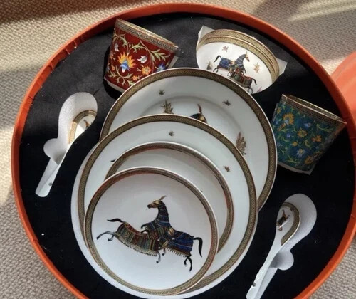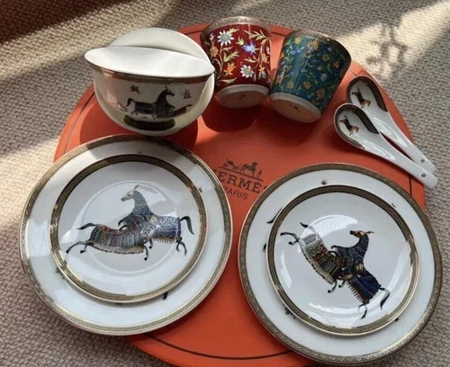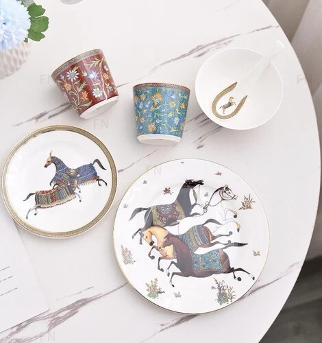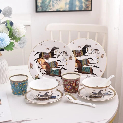 10 Piece Porcelain Dinnerware Gift Set Gorgeous Horses dinnerware collection, the most exquisite and sophisticated tradition! Gorgeous and exquisite patterns and colorful decorations. The design of the galloping steed, the symbol of good luck, exquisite pattern, is a stable sense of table tableware 10-piece set: -8 inch plate *2pcs -Bone dish *2pcs -Small bowls*2pcs -Small spoon *2pcs -Cups*2pcs