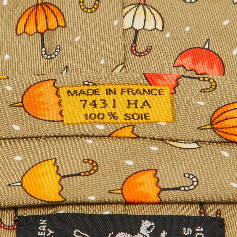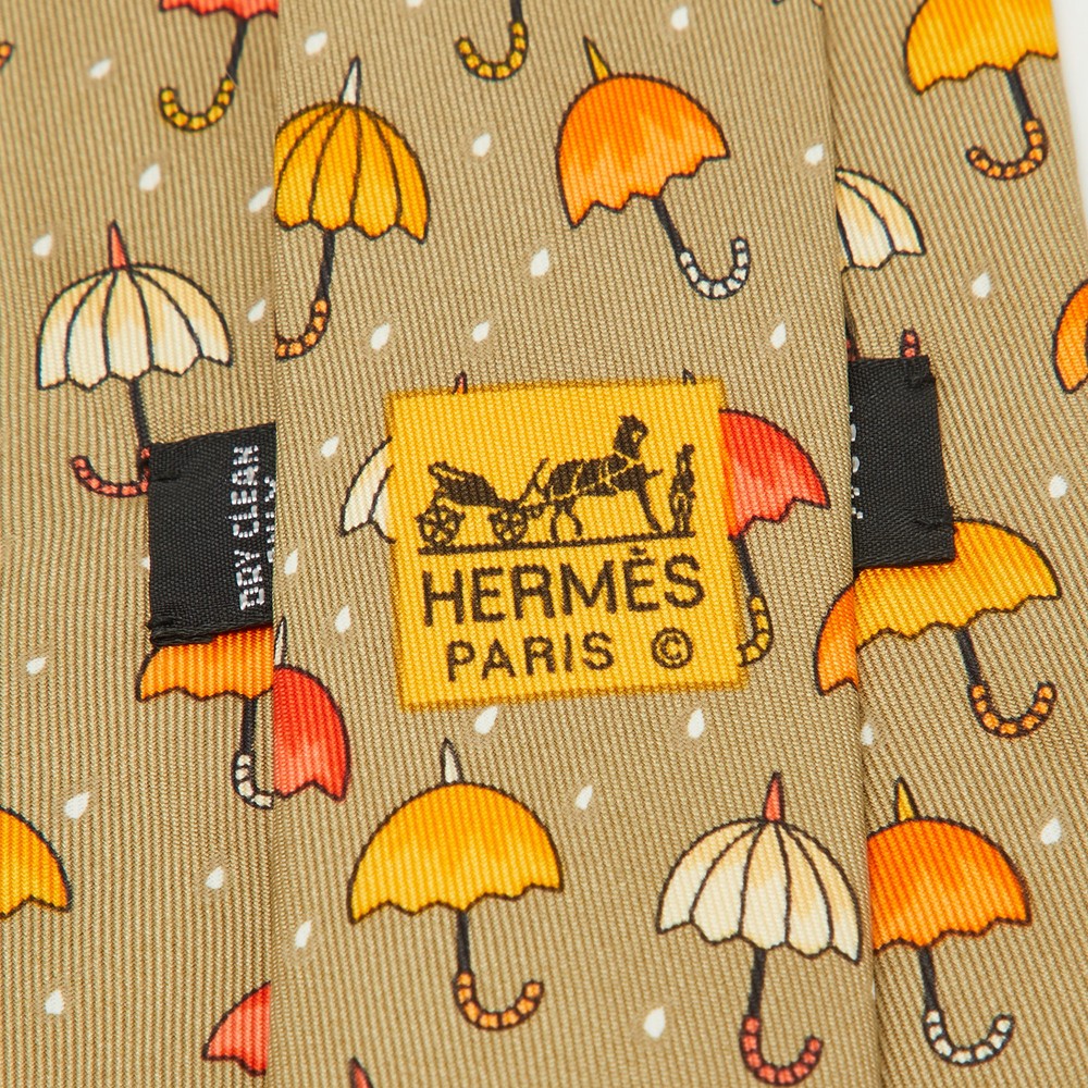 Hermes Multicolor Silk Classic Tie with Umbrella Print Design